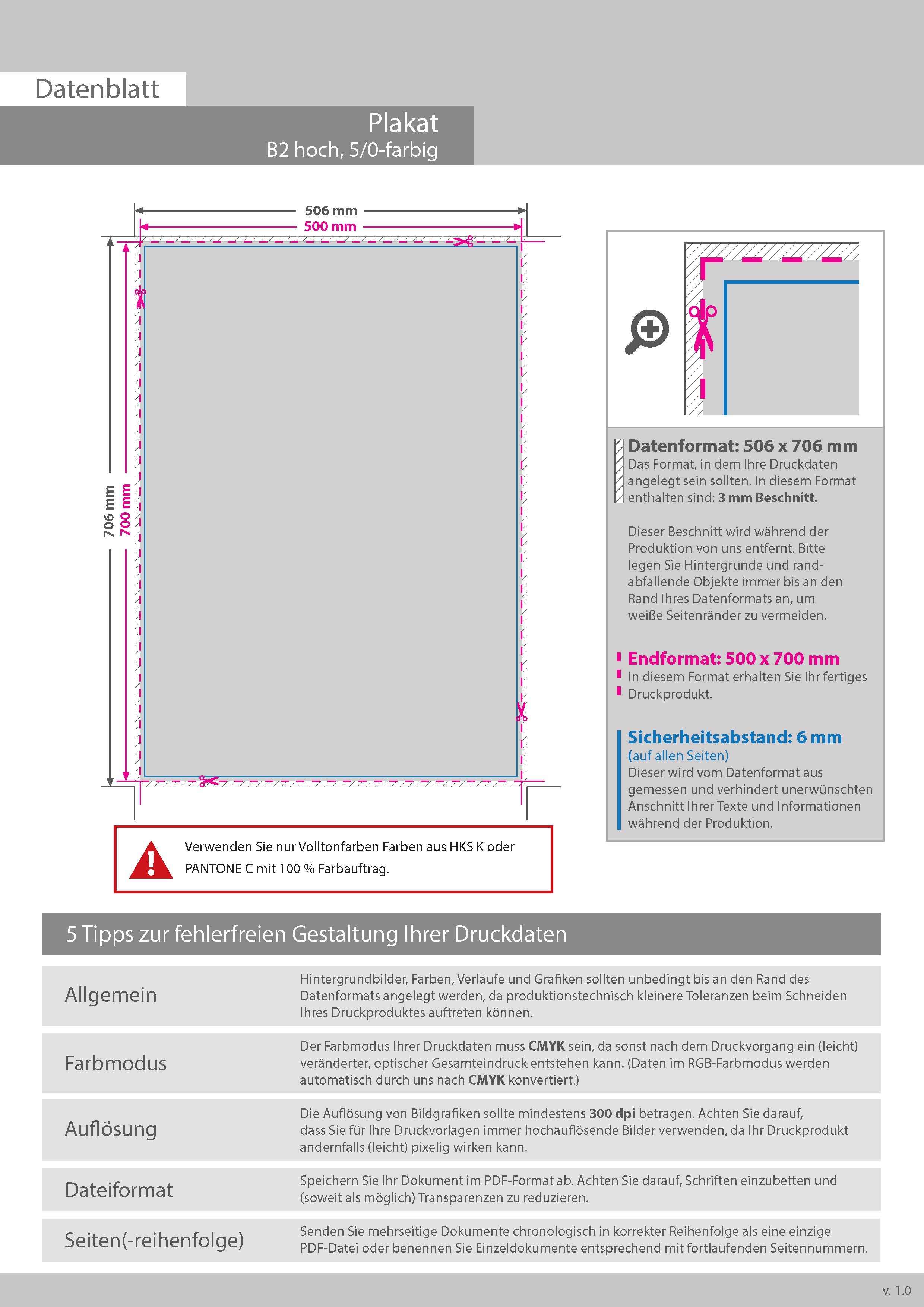 Plakat B2 hoch (500 x 700 mm) einseitig 5/0-farbig bedruckt (CMYK 4-farbig + 1 Sonderfarbe HKS oder Pantone)
