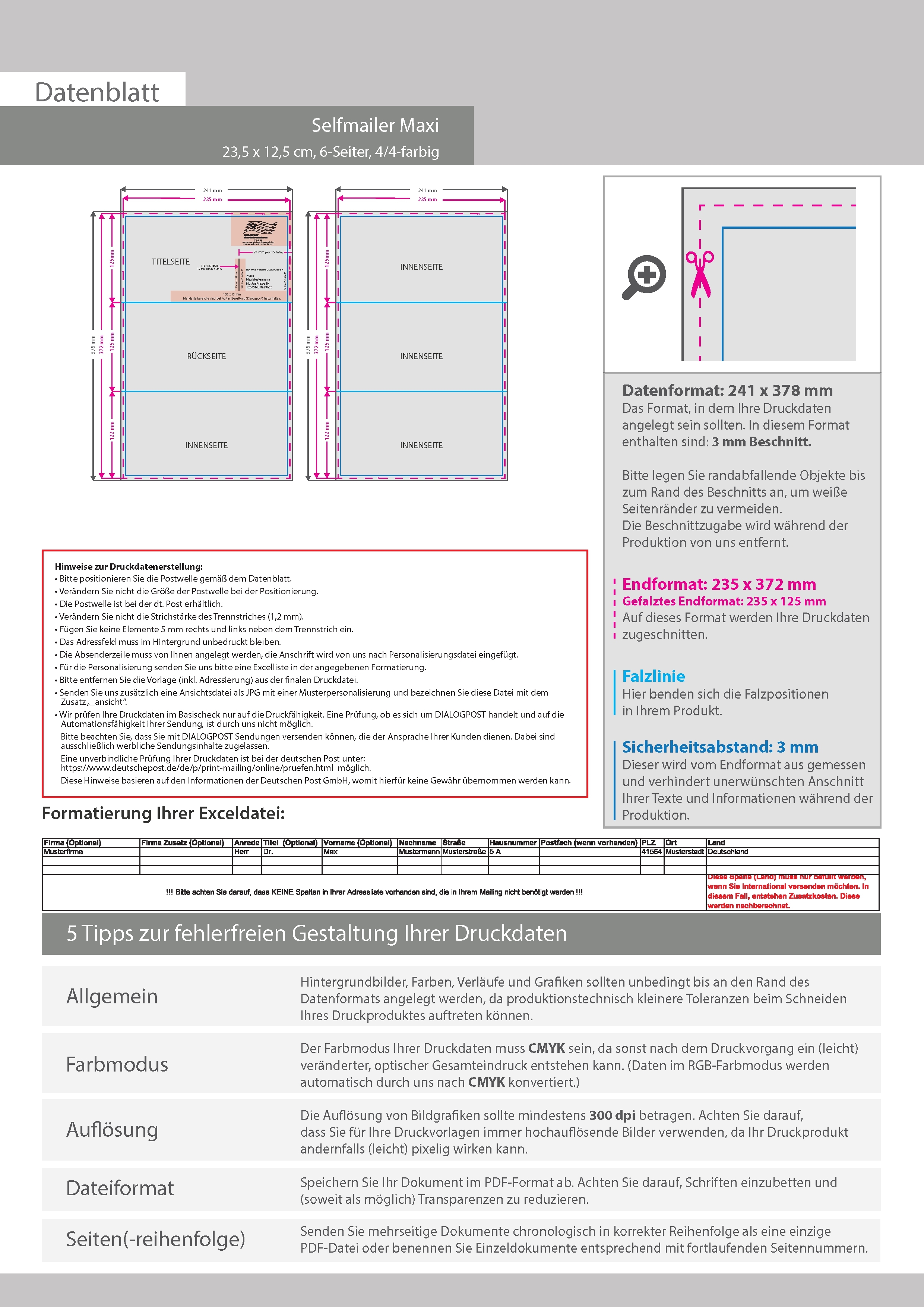 Selfmailer, gefalzt auf MAXI-Format (23,5 x 12,5 cm), 6-seiter