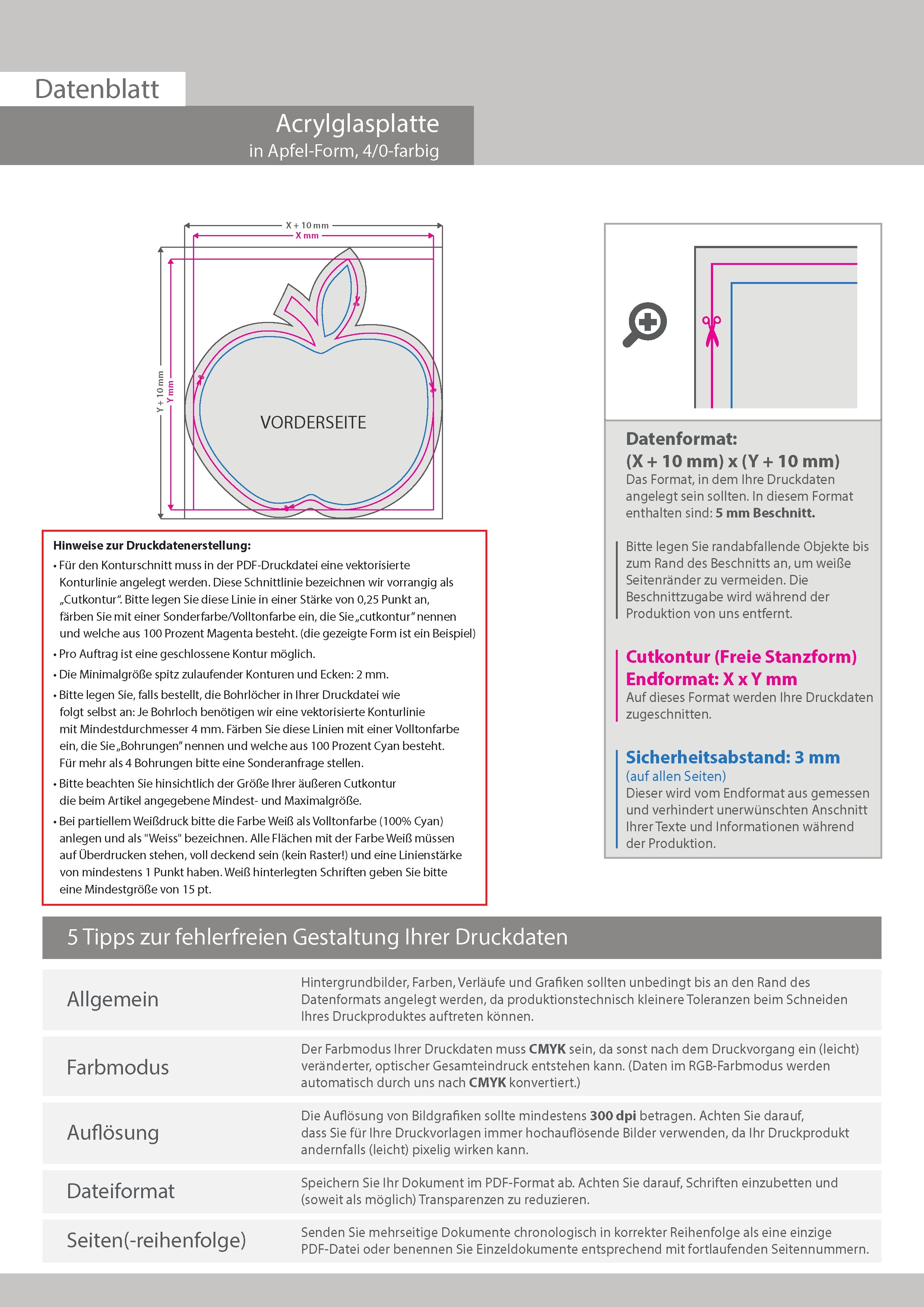 Acrylplatte mit Echtglasbeschichtung in Apfel-Form konturgefräst