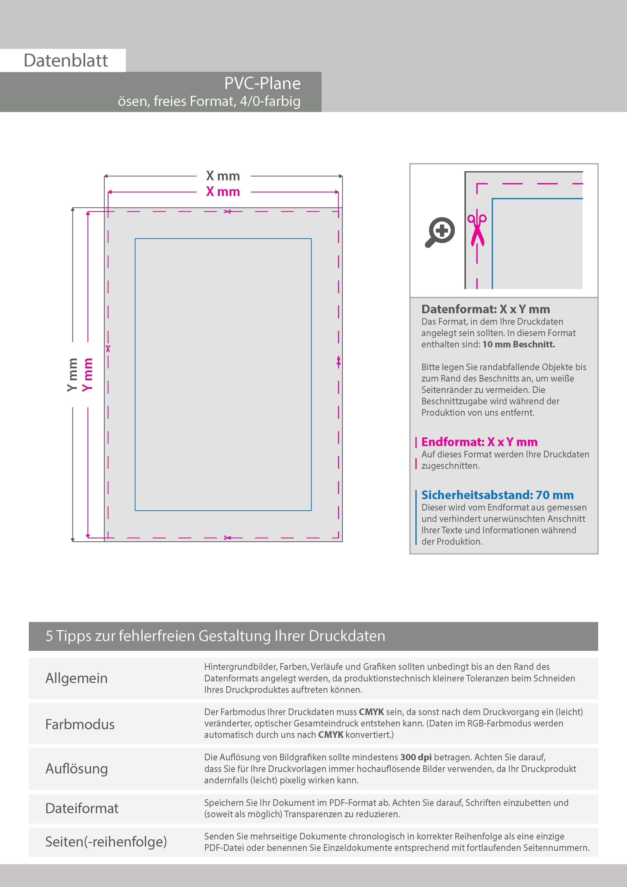Hochwertige PVC-Plane, 4/0-farbig bedruckt, Ösen im Abstand von 50 cm rundum