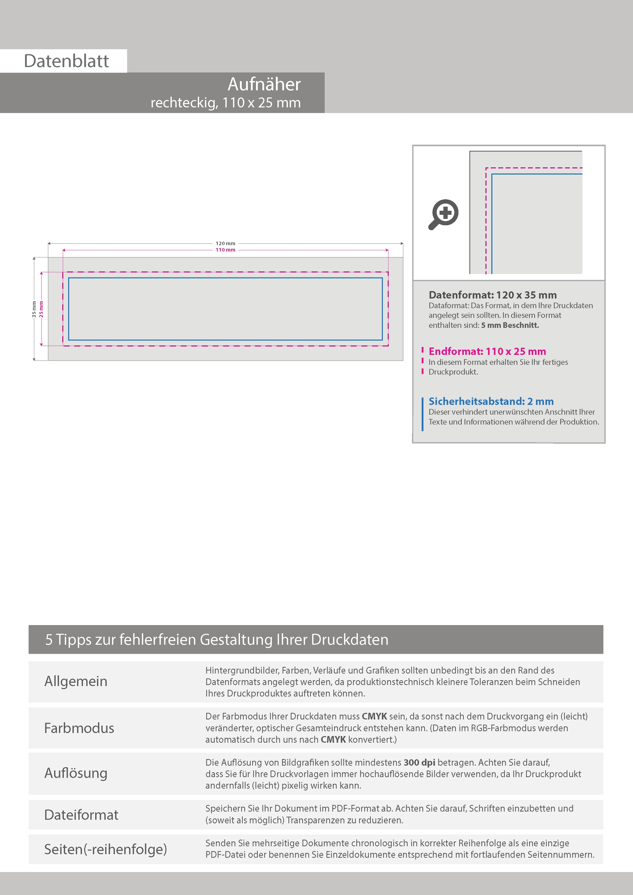 Hochwertiger Aufnäher mit Bügelfolie rechteckig 11 x 2,5 cm, mit Druck