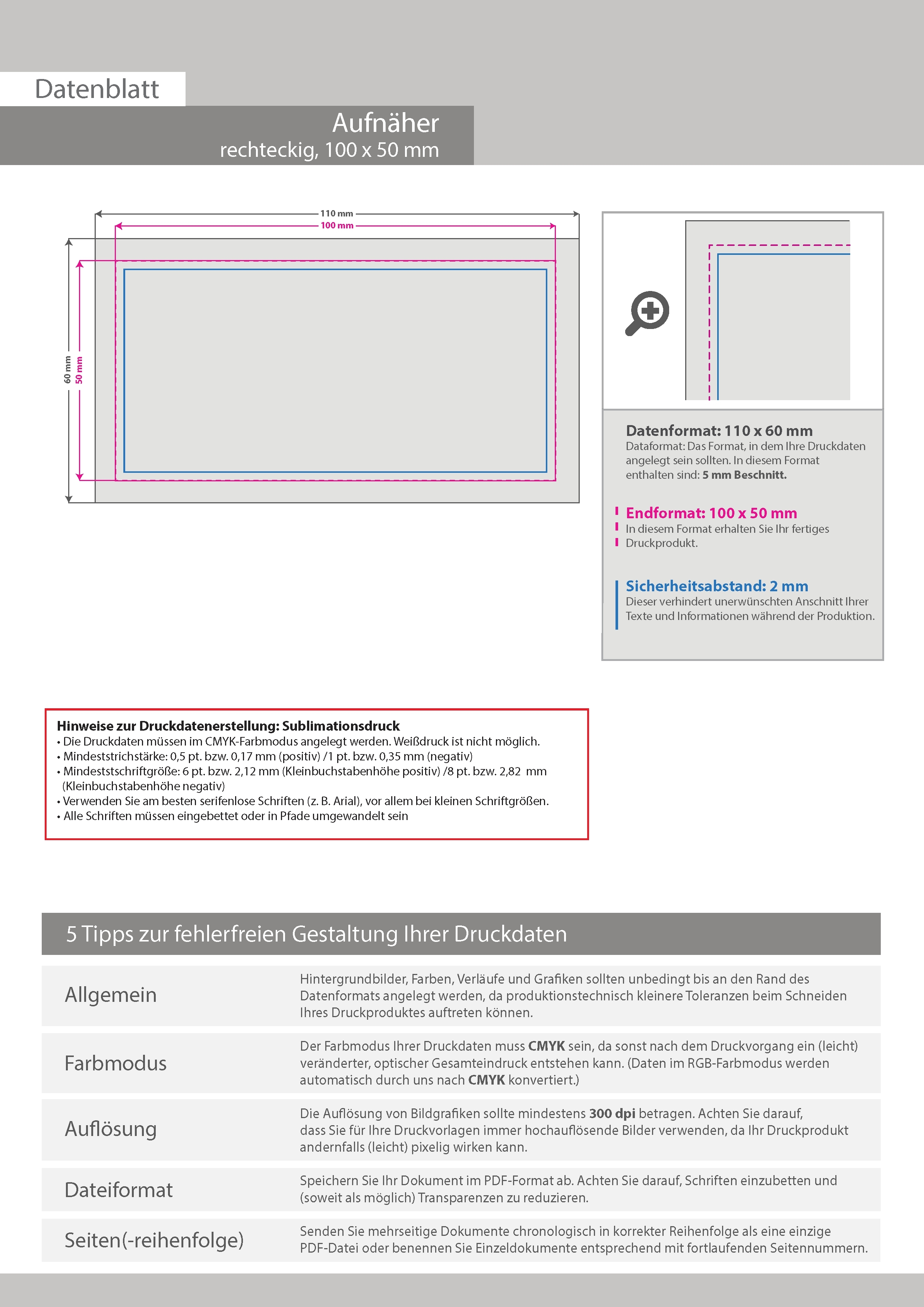 Hochwertiger Aufnäher mit Bügelfolie rechteckig 10 x 5 cm, mit Druck