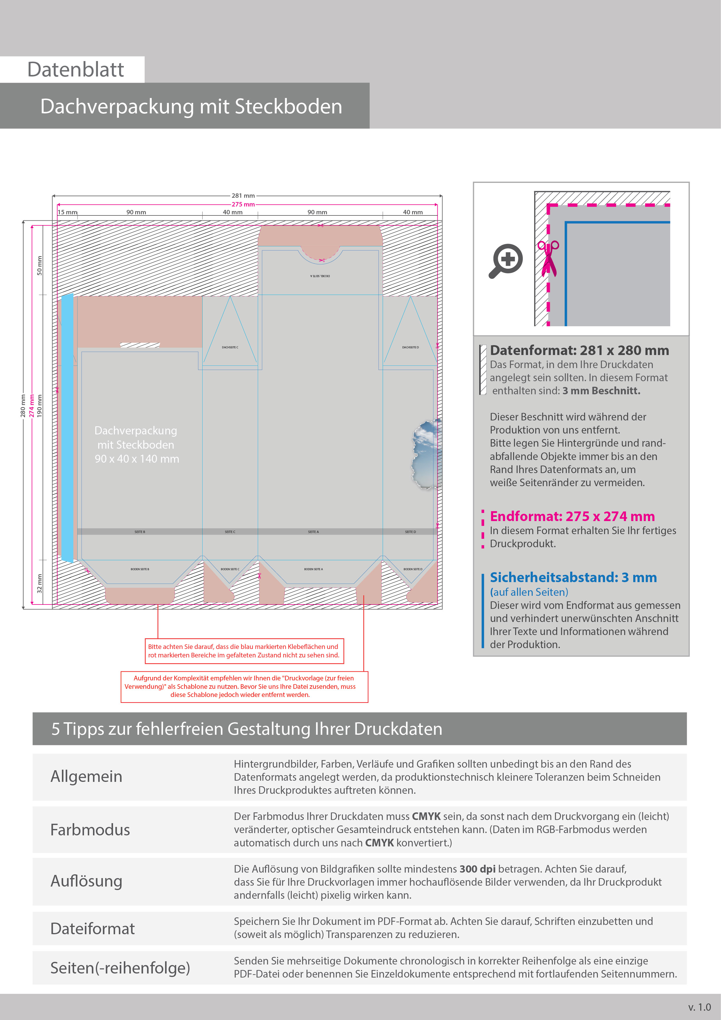 Dachverpackung mit Steckboden mit Längsnaht (9 x 4 x 14 cm plus Dach) einseitig bedruckt 4/0-farbig