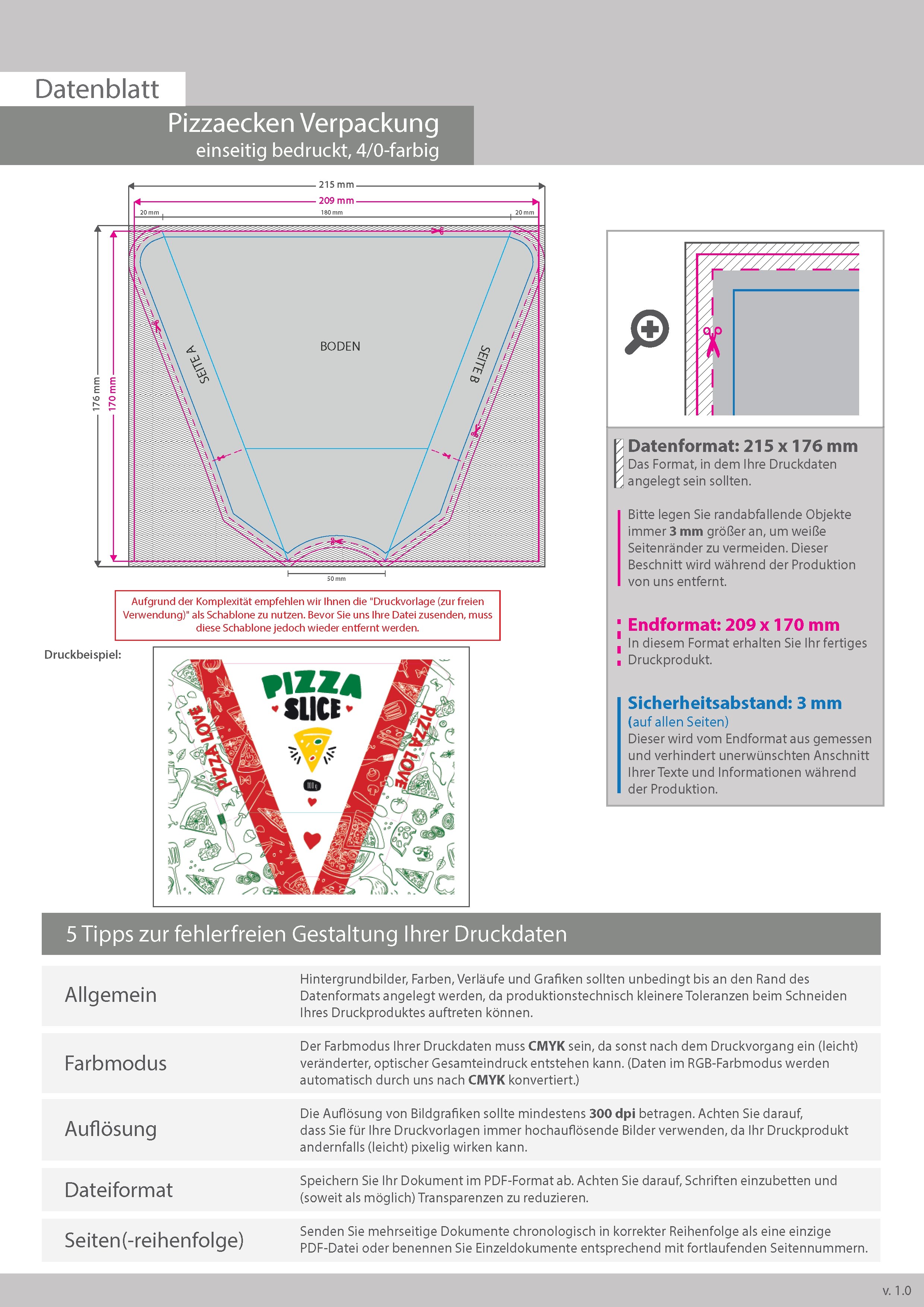 Pizzaecken Verpackung einseitig bedruckt 4/0-farbig