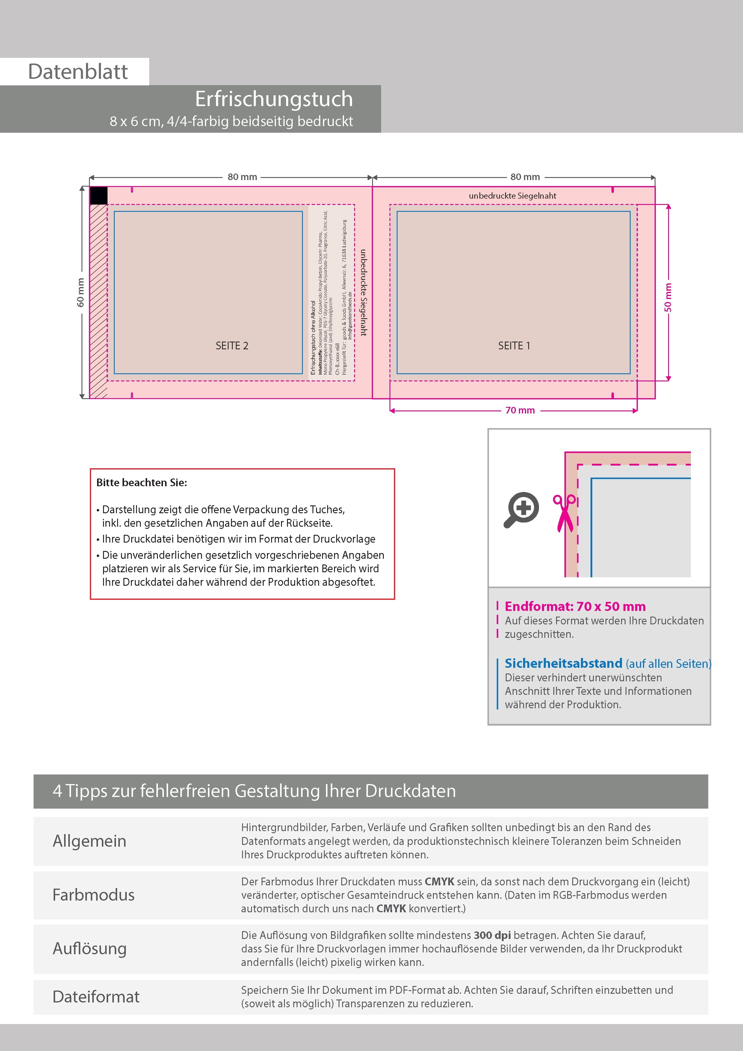 TOPSELLER: Erfrischungstuch, 8 x 6 cm, 4/4-farbig beidseitig bedruckt