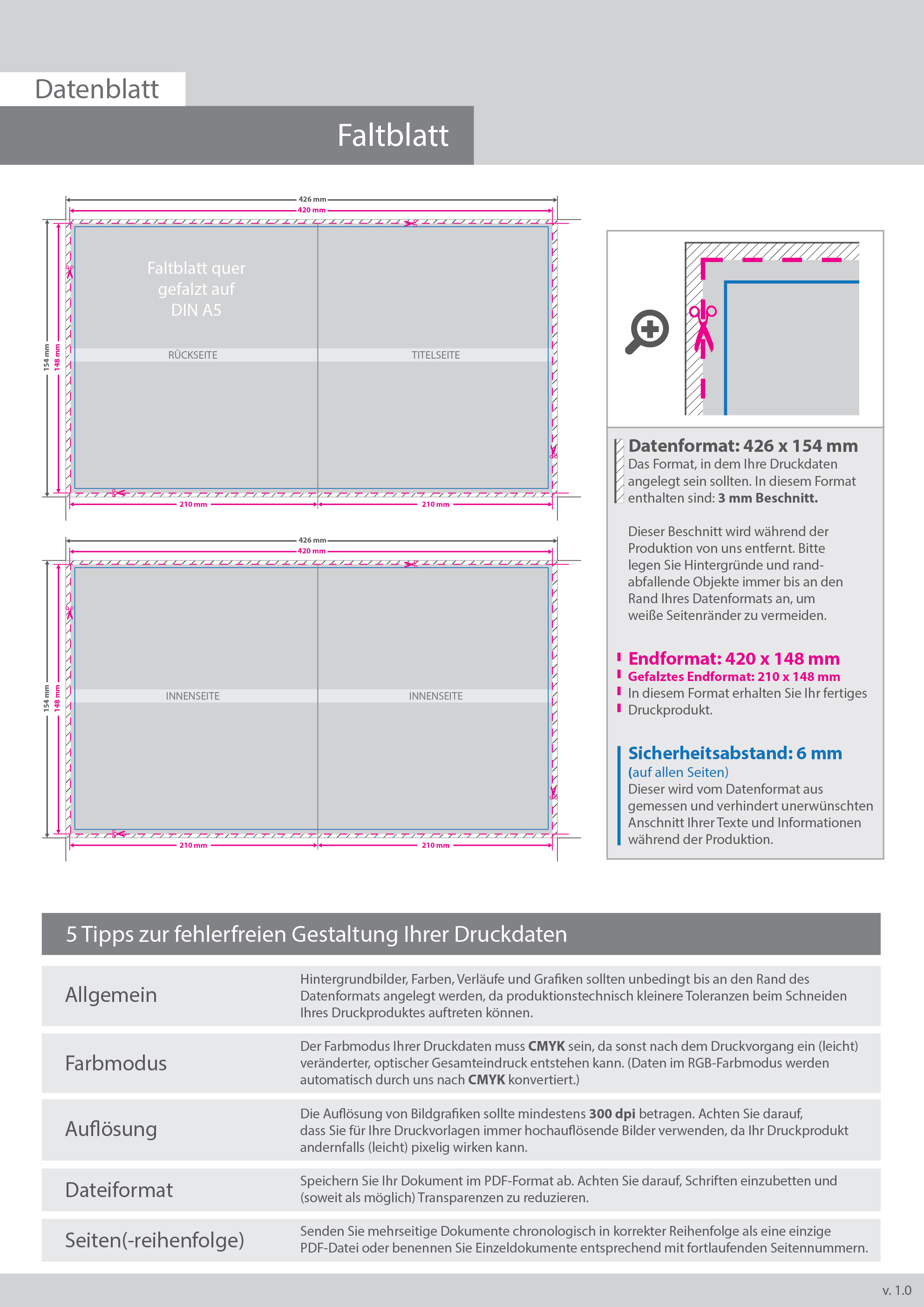 Faltblatt, gefalzt auf DIN A5 quer, vertikaler Mittelfalz, 4-seitig