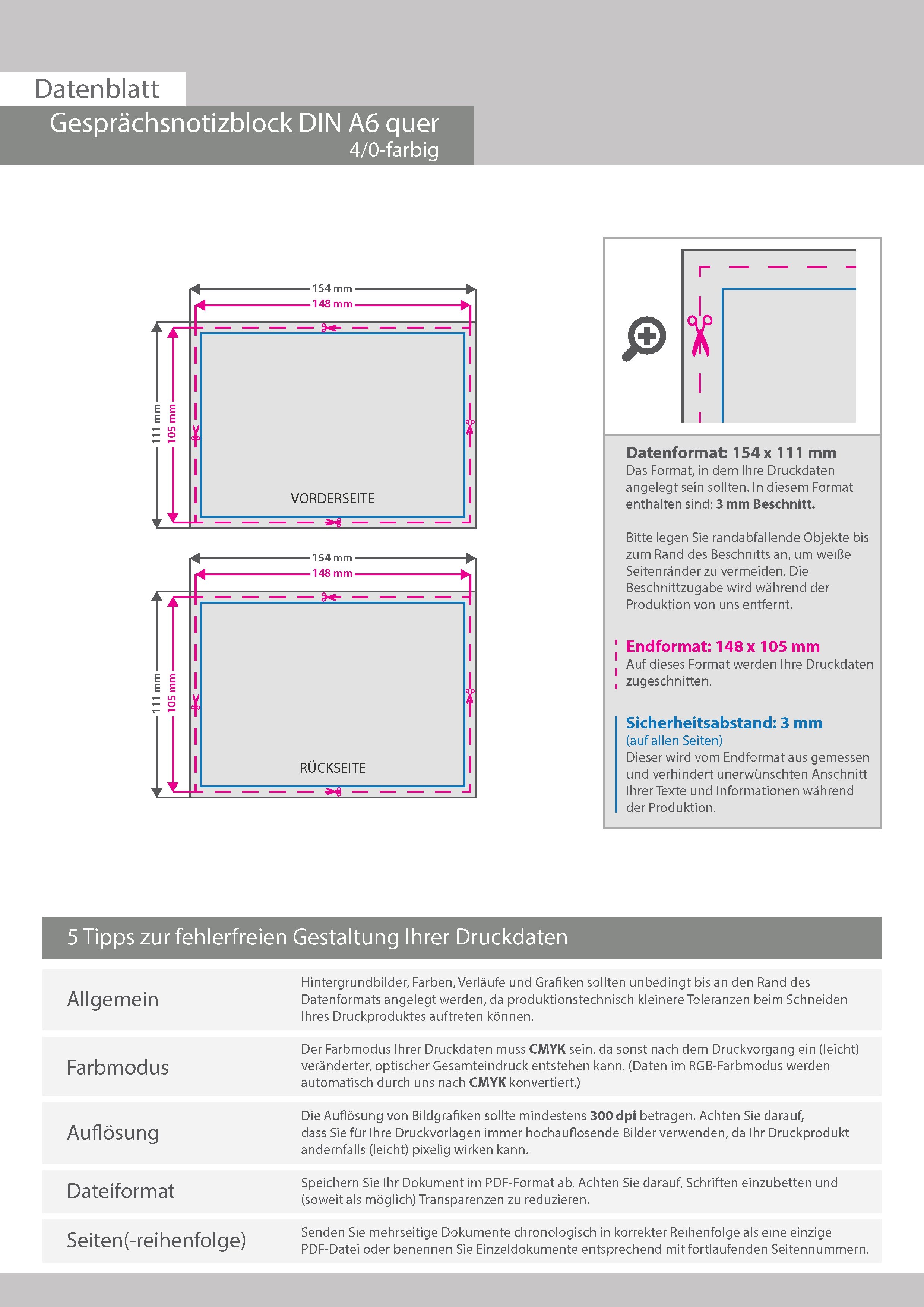Gesprächsnotizblock, DIN A6 quer, 200 Blatt, 4/4 farbig beidseitig bedruckt