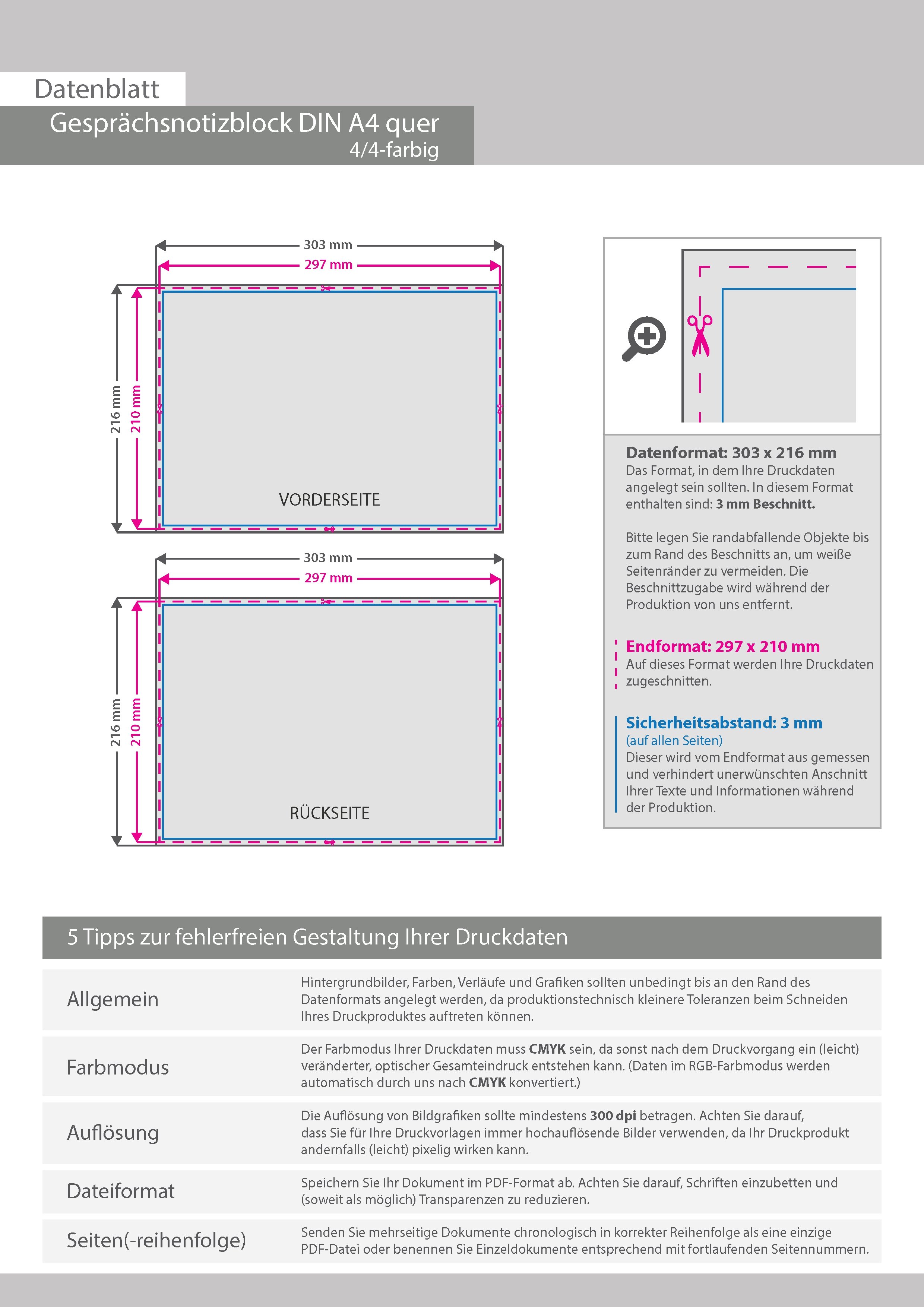 Gesprächsnotizblock, DIN A4 quer, 10 Blatt, 4/4 farbig beidseitig bedruckt