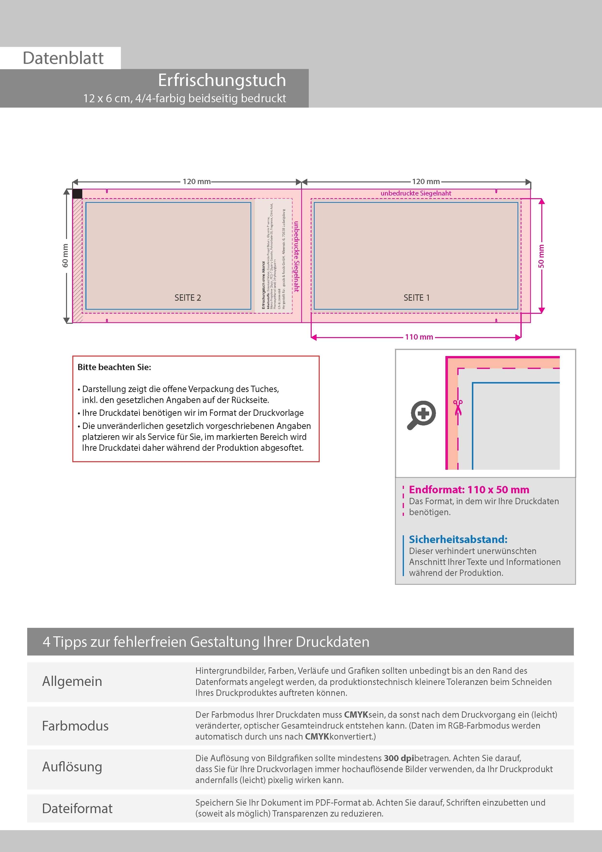 Erfrischungstuch, 12 x 6 cm, 4/4-farbig beidseitig bedruckt