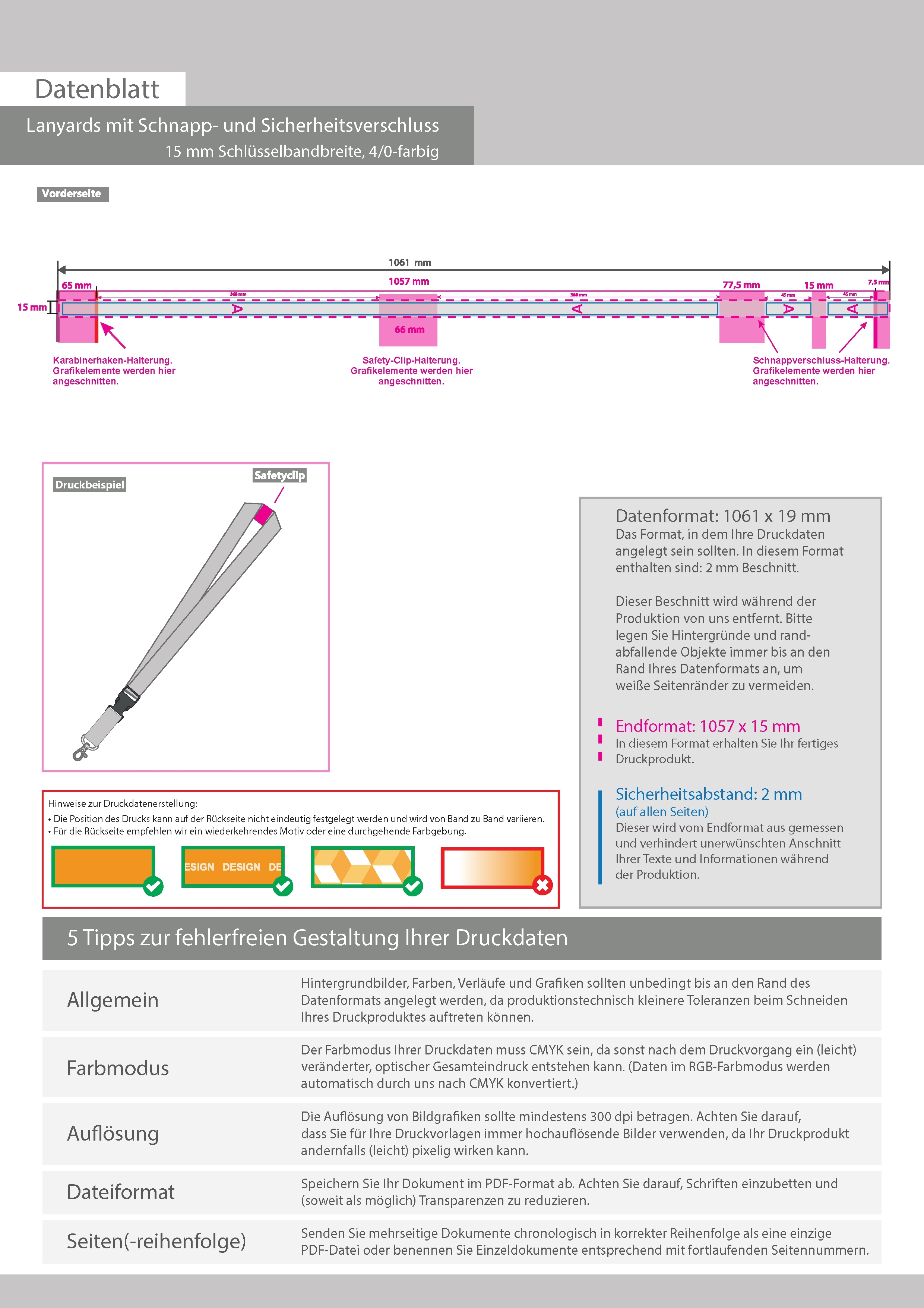 Lanyards mit Schnapp- und Sicherheitsverschluss, 15 mm Schlüsselbandbreite, 4/0-farbig einseitig bedruckt