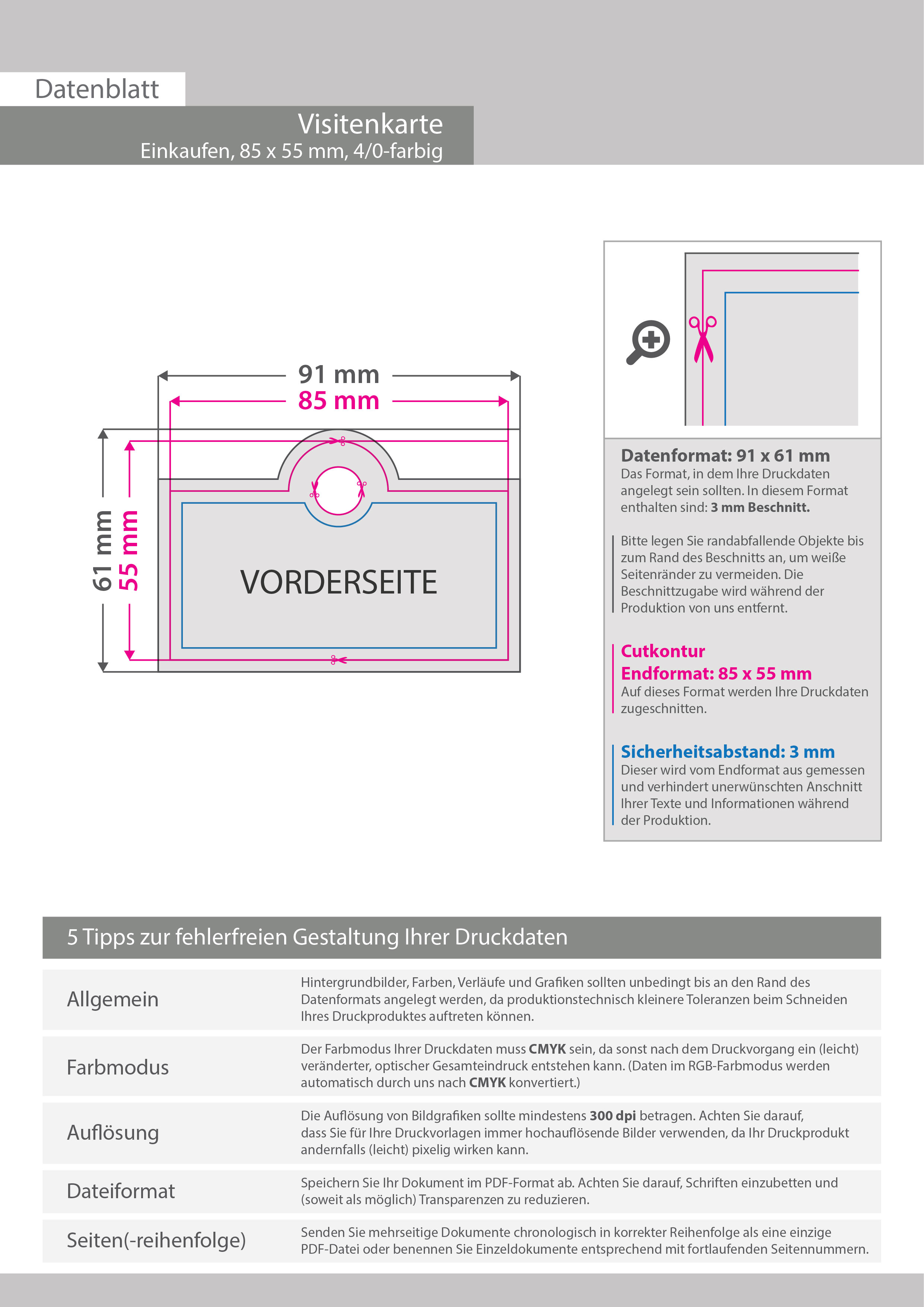 Visitenkarte Einkaufen, 85 x 55 mm, 1-seitig, 4/0-farbig CMYK