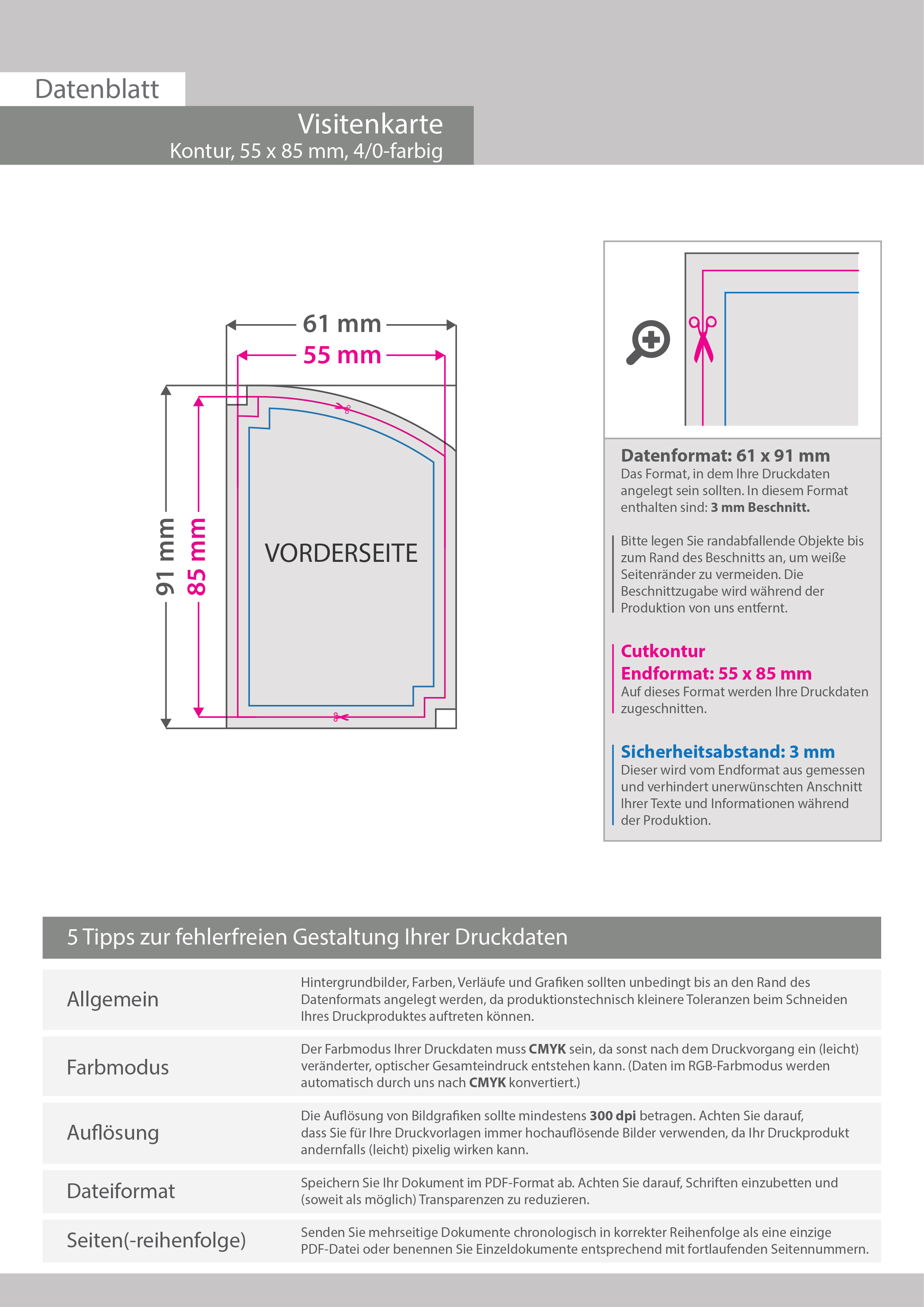 Visitenkarte Kontur, 55 x 85 mm, 1-seitig, 4/0-farbig CMYK
