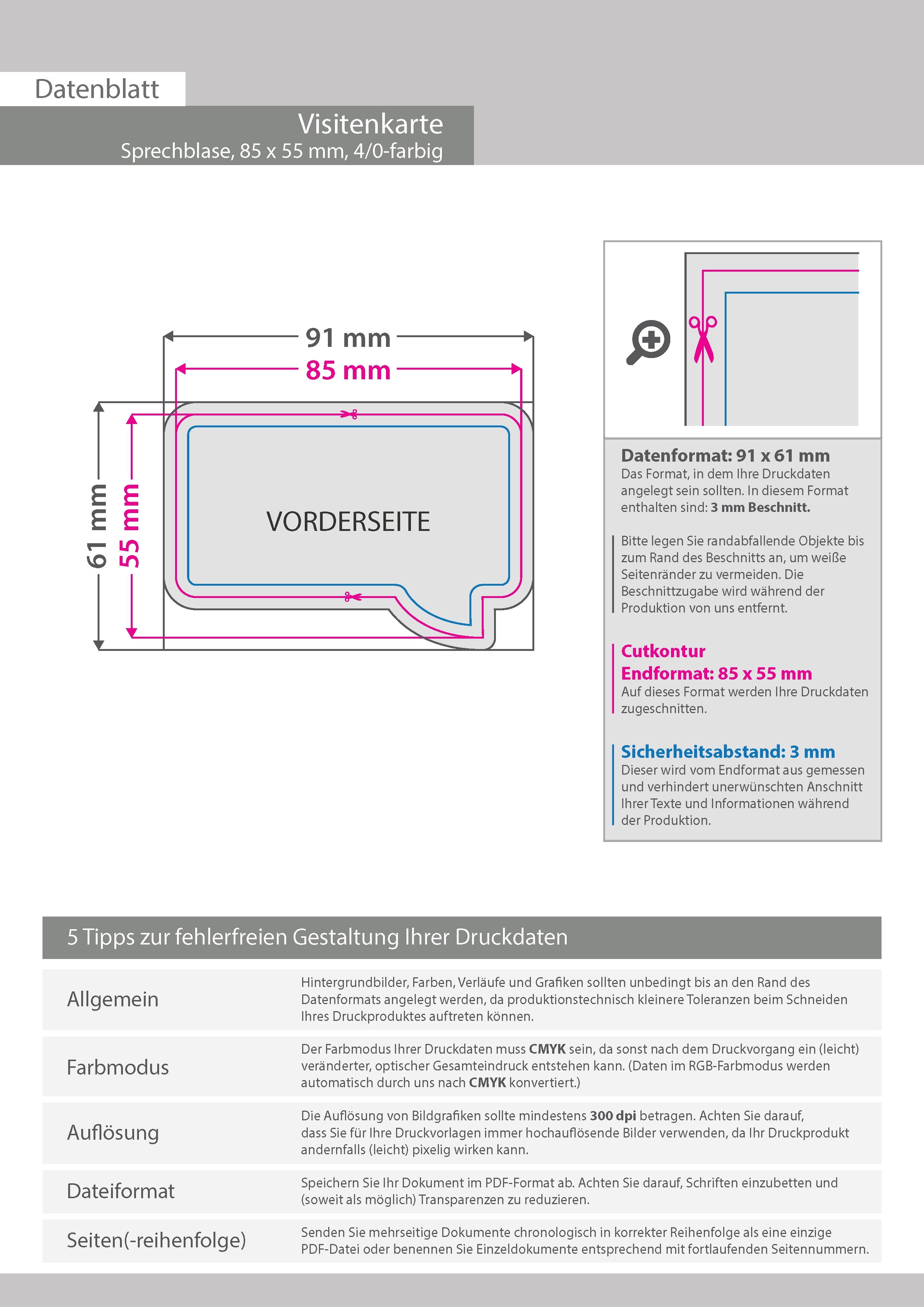 Visitenkarte Sprechblase, 85 x 55 mm, 1-seitig, 4/0-farbig CMYK