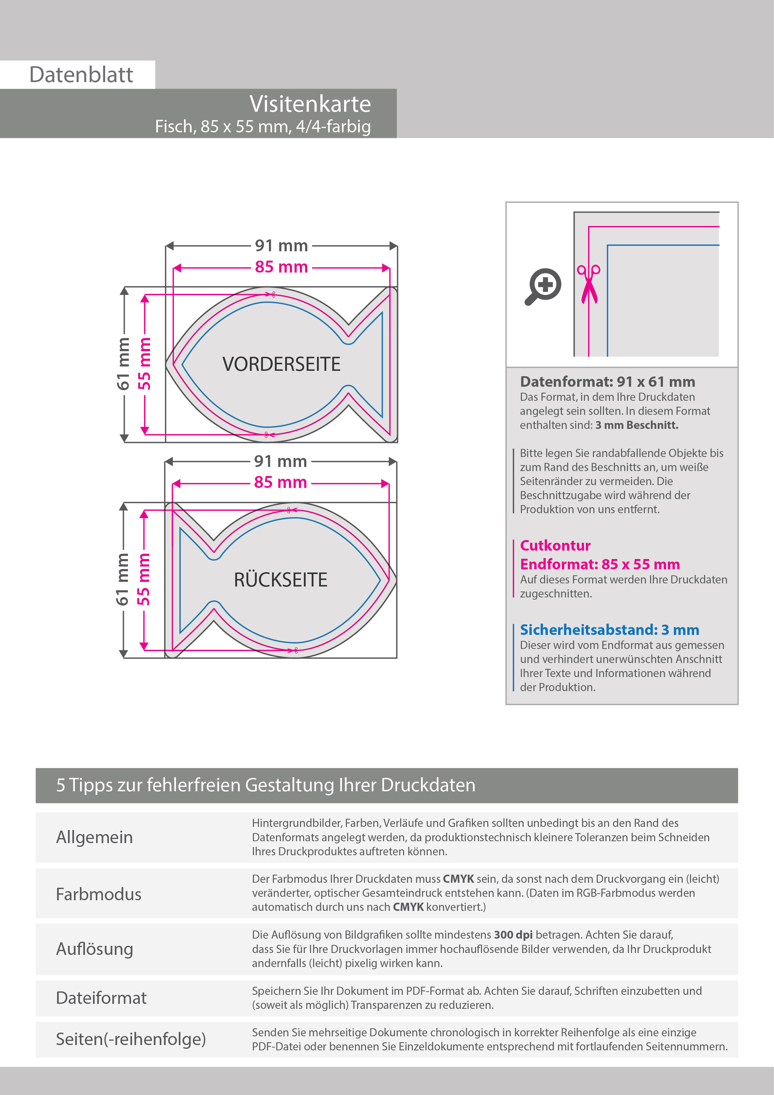 Visitenkarte Fisch, 85 x 55 mm, 2-seitig, 4/4-farbig CMYK
