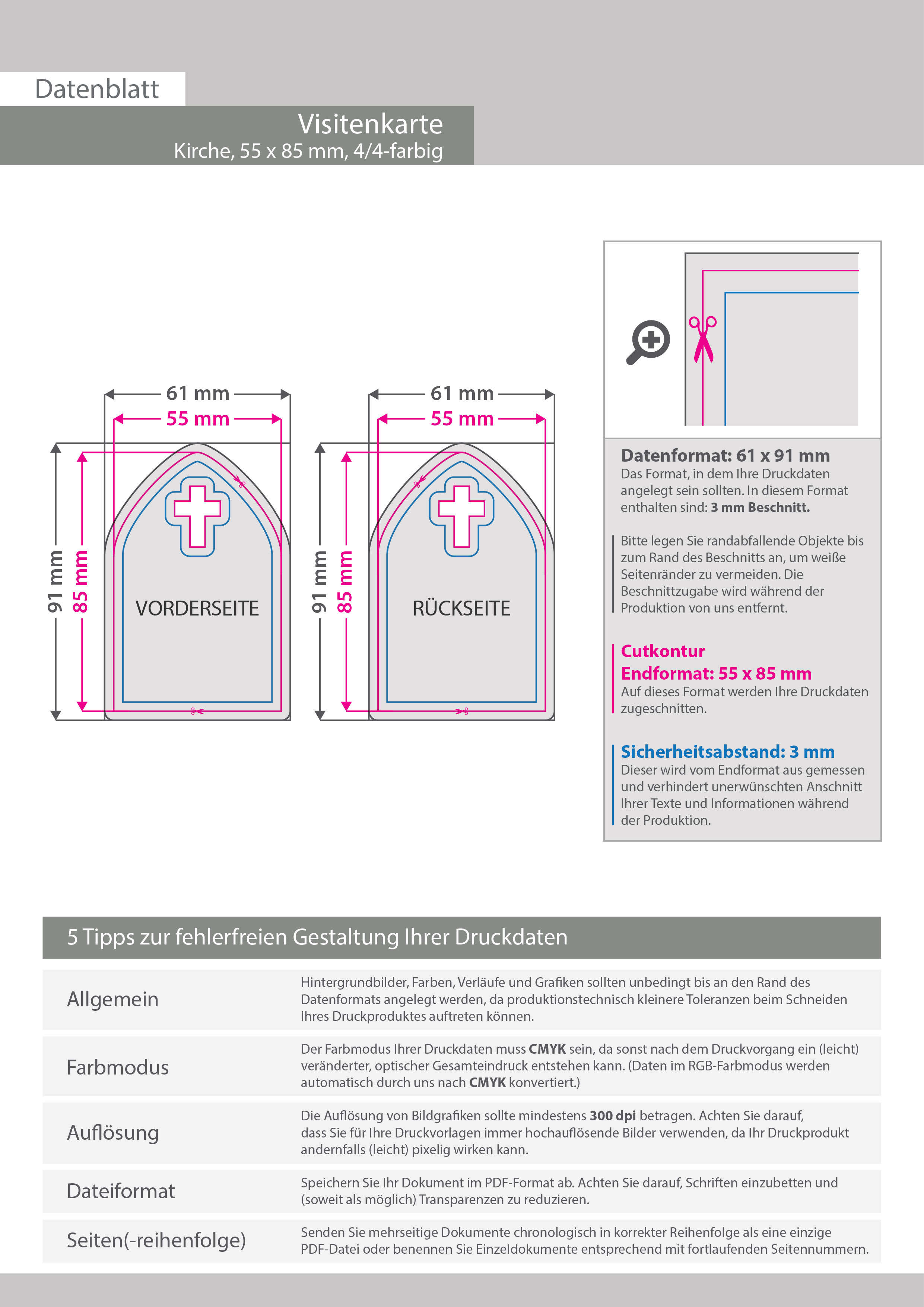 Visitenkarte Kirche, 55 x 85 mm, 2-seitig, 4/4-farbig CMYK