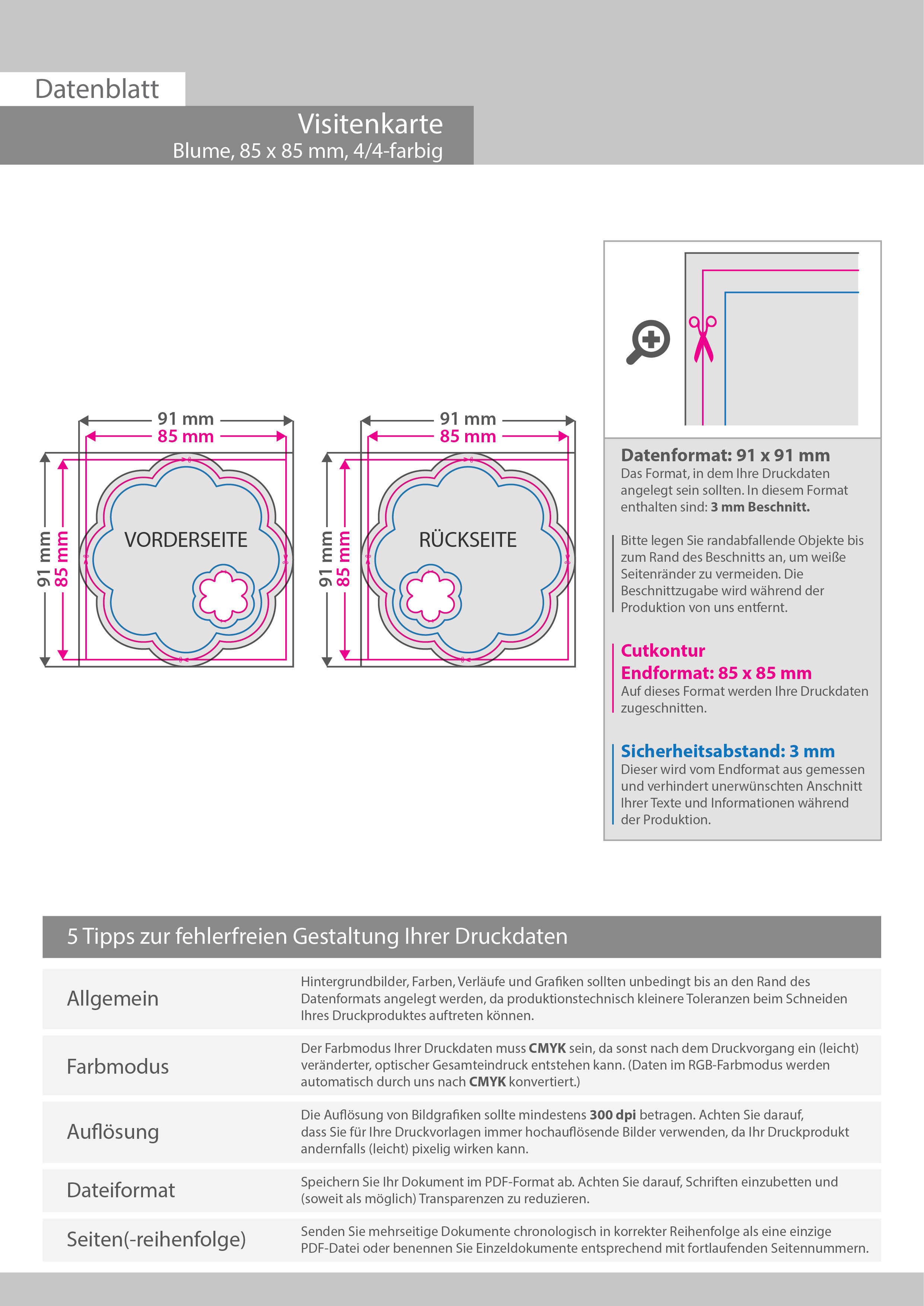 Visitenkarte Blume, 85 x 85 mm, 2-seitig, 4/4-farbig CMYK
