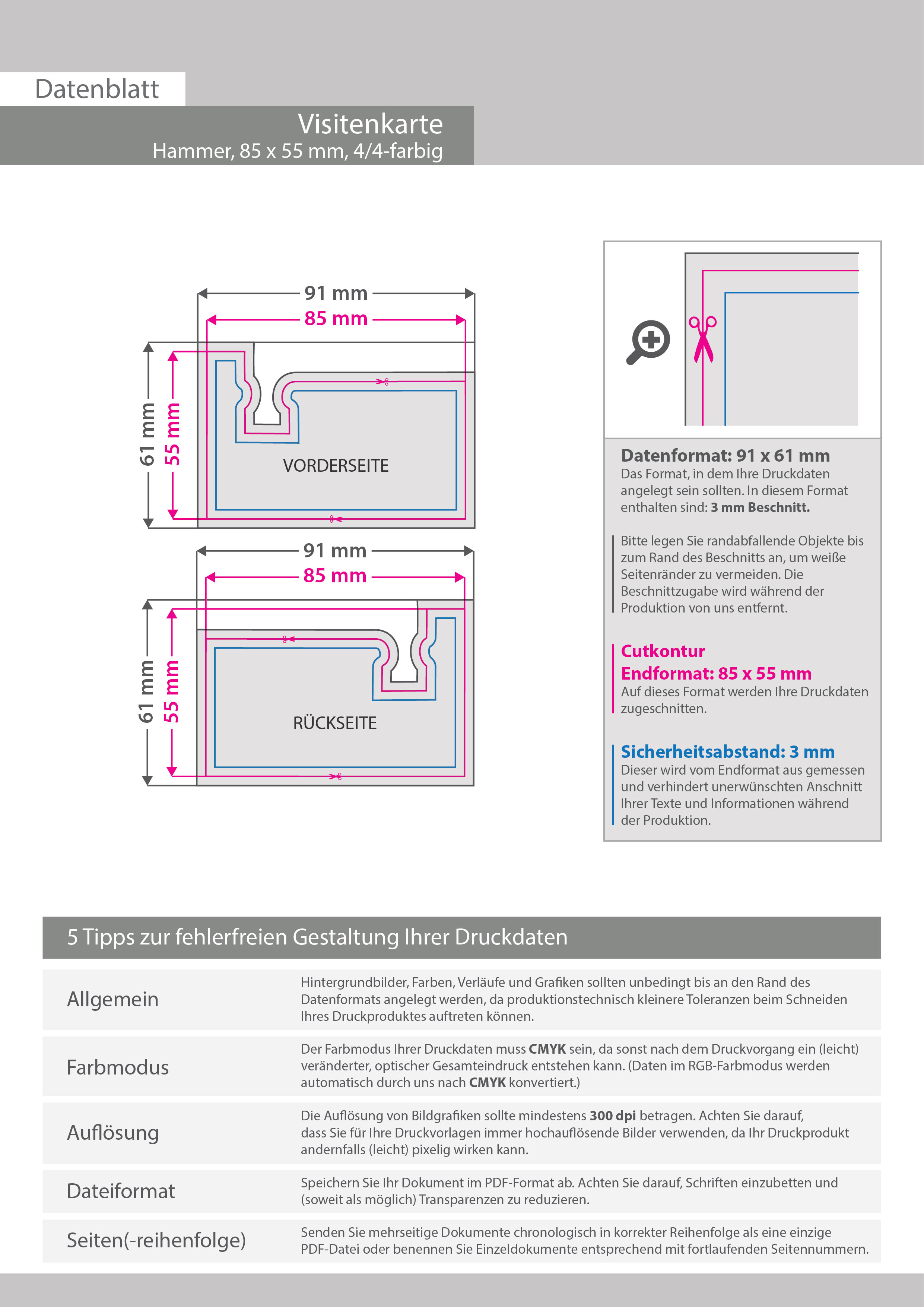 Visitenkarte Hammer, 85 x 55 mm, 2-seitig, 4/4-farbig CMYK