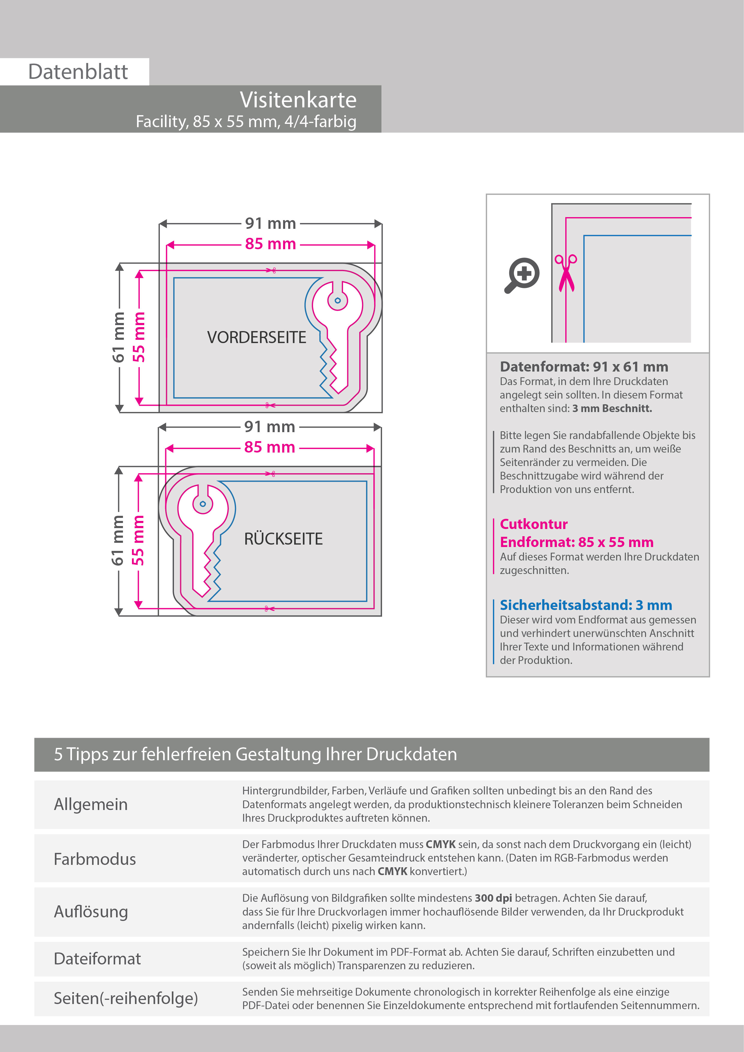 Visitenkarte Facility, 85 x 55 mm, 2-seitig, 4/4-farbig CMYK