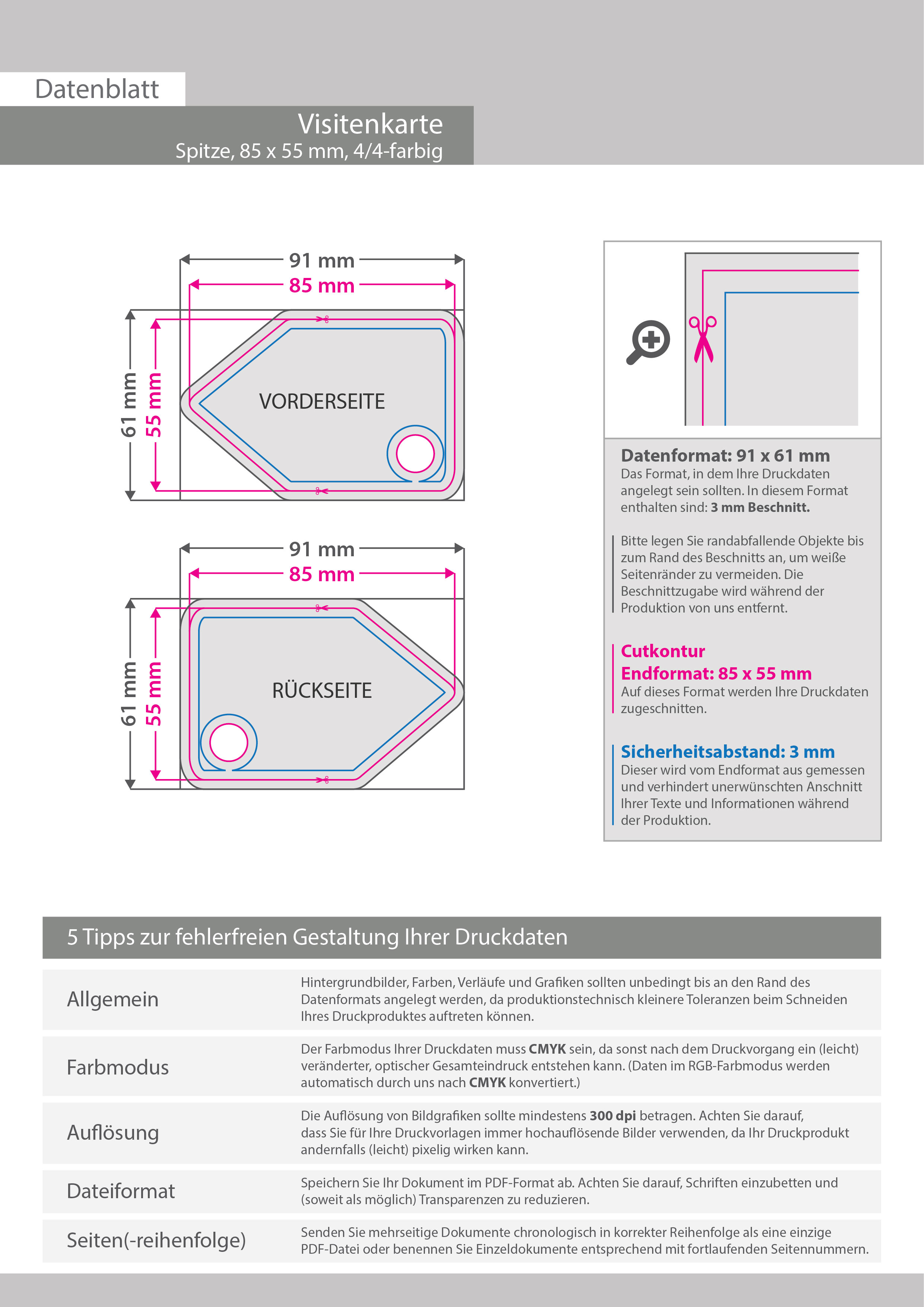 Visitenkarte Spitze, 85 x 55 mm, 2-seitig, 4/4-farbig CMYK