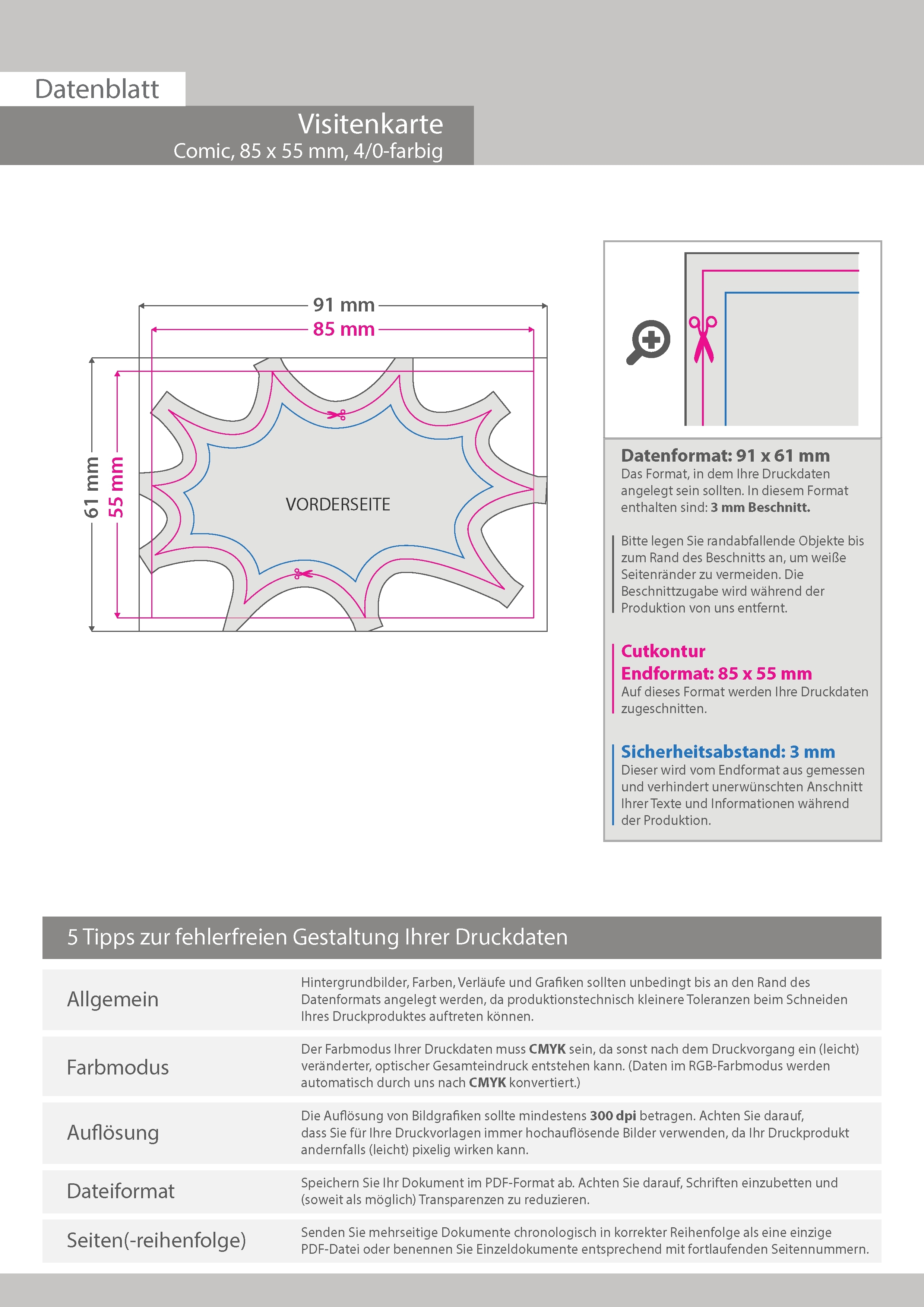 Visitenkarte Comic, 85 x 55 mm, 1-seitig, 4/0-farbig CMYK