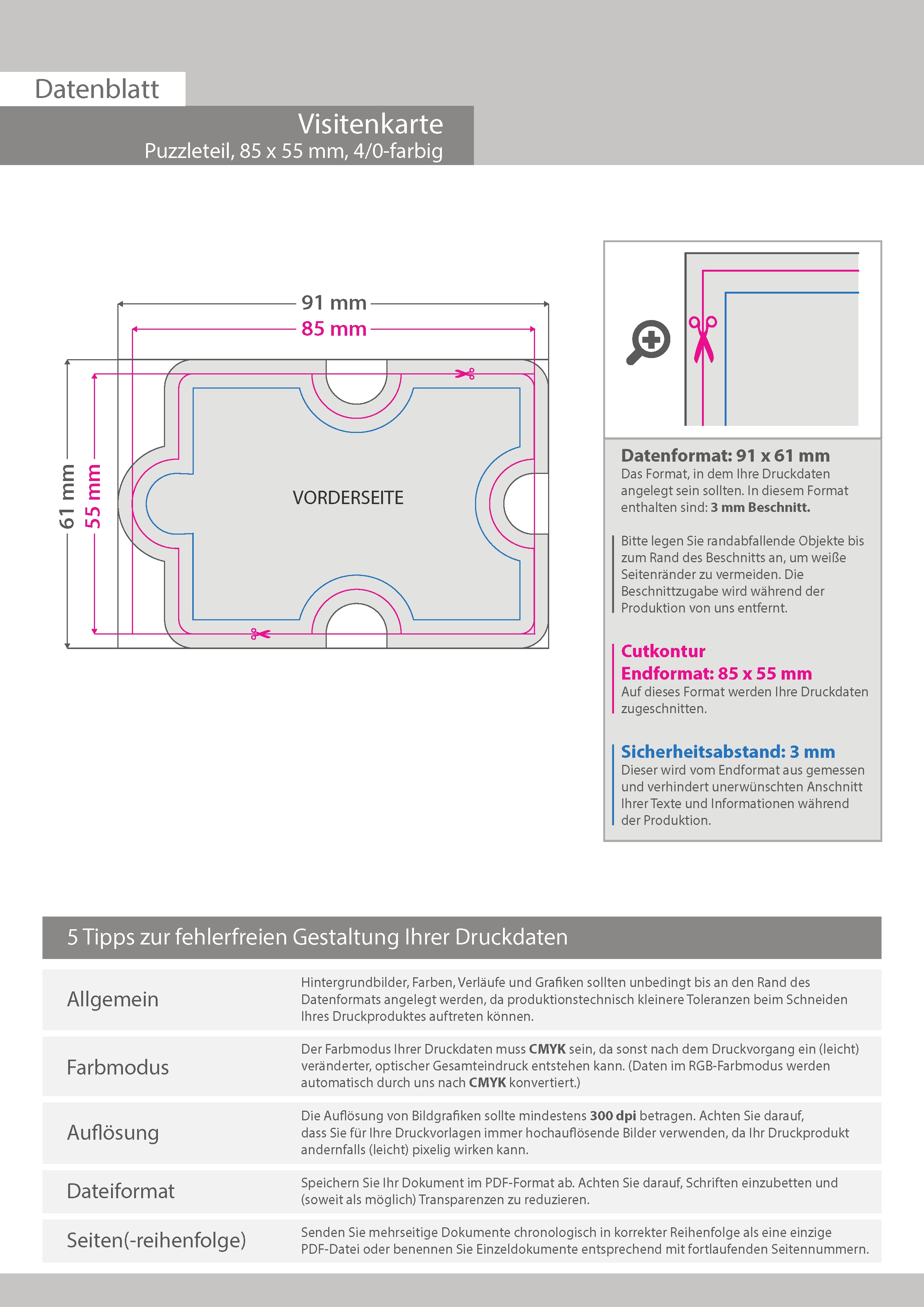 Visitenkarte Puzzleteil, 85 x 55 mm, 1-seitig, 4/0-farbig CMYK