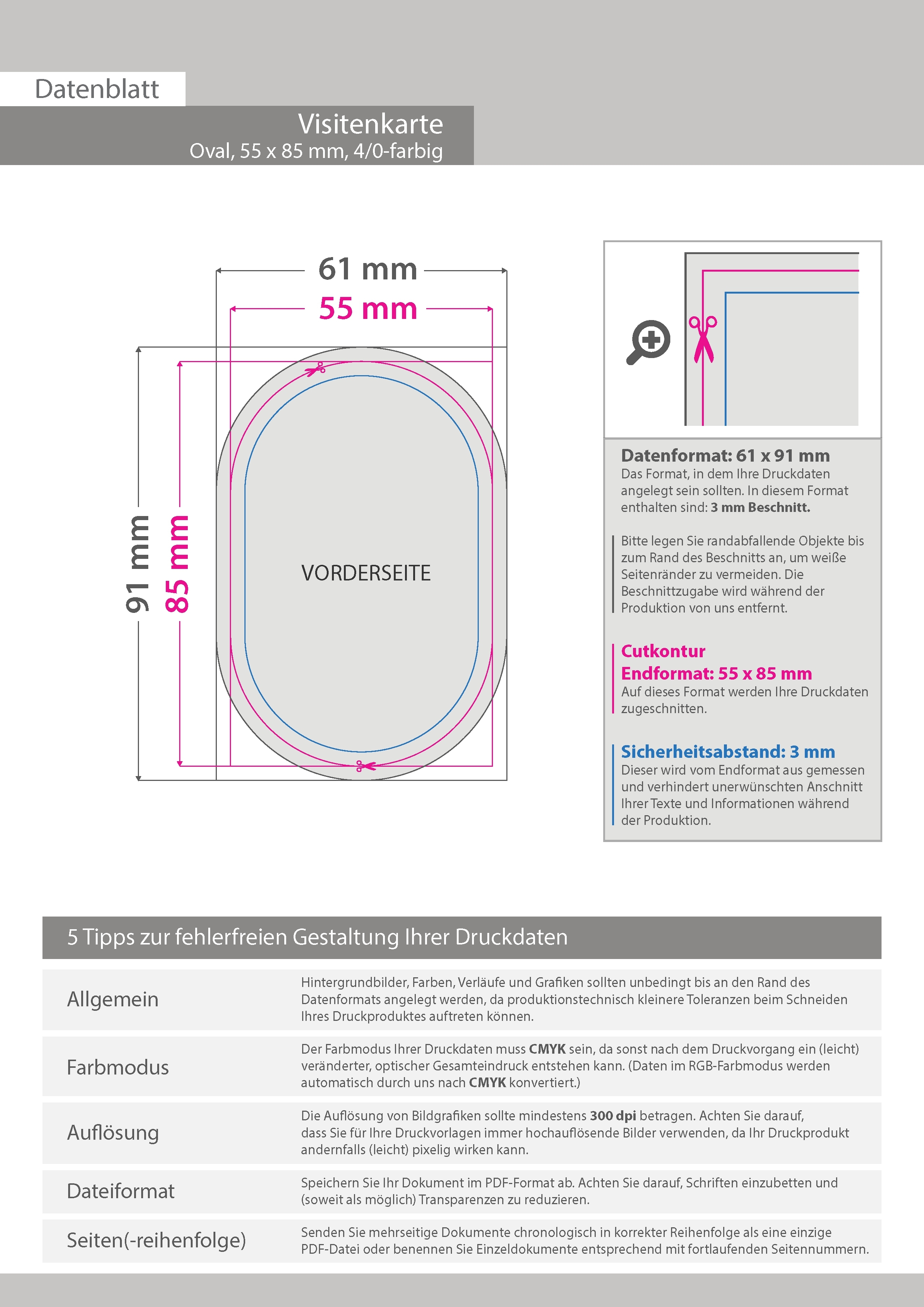 Visitenkarte Oval, 55 x 85 mm, 1-seitig, 4/0-farbig CMYK