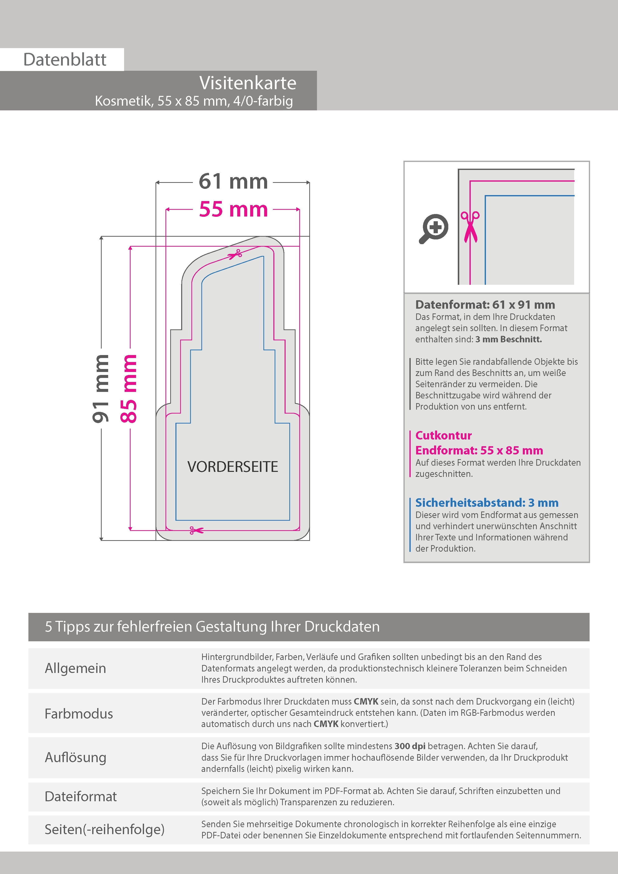 Visitenkarte Kosmetik, 55 x 85 mm, 1-seitig, 4/0-farbig CMYK