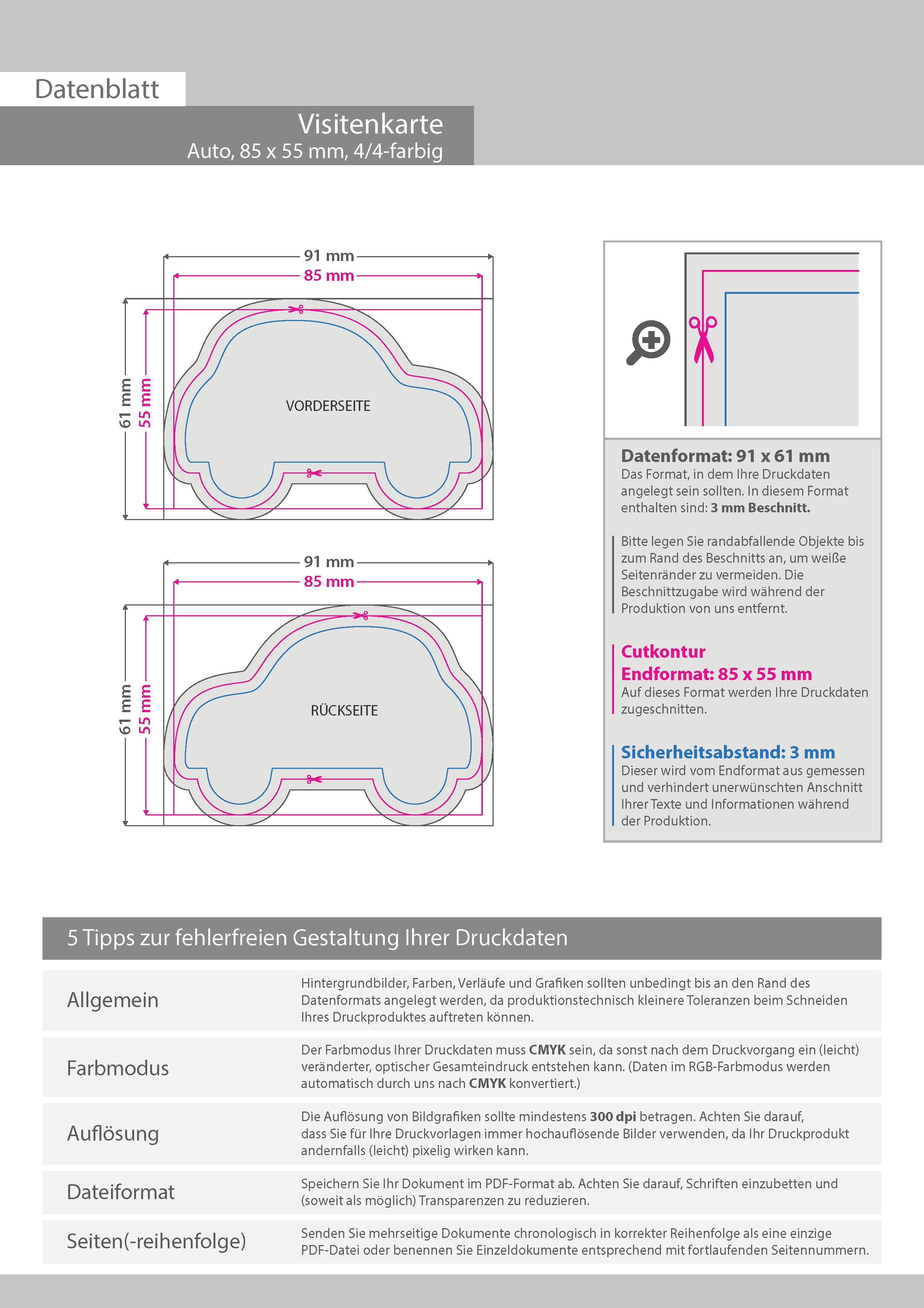 Visitenkarte Auto, 85 x 55 mm, 2-seitig, 4/4-farbig CMYK