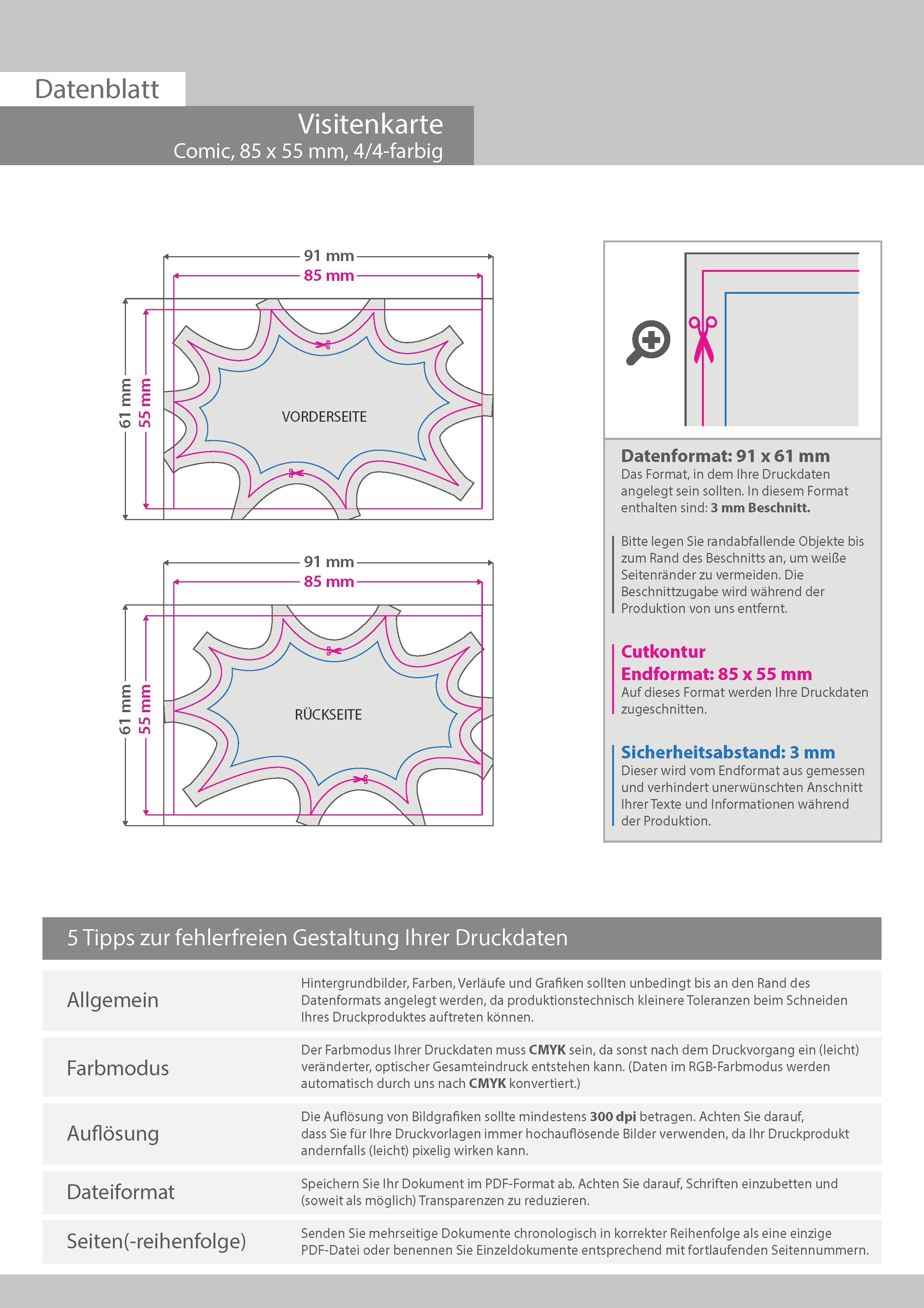 Visitenkarte Comic, 85 x 55 mm, 2-seitig, 4/4-farbig CMYK