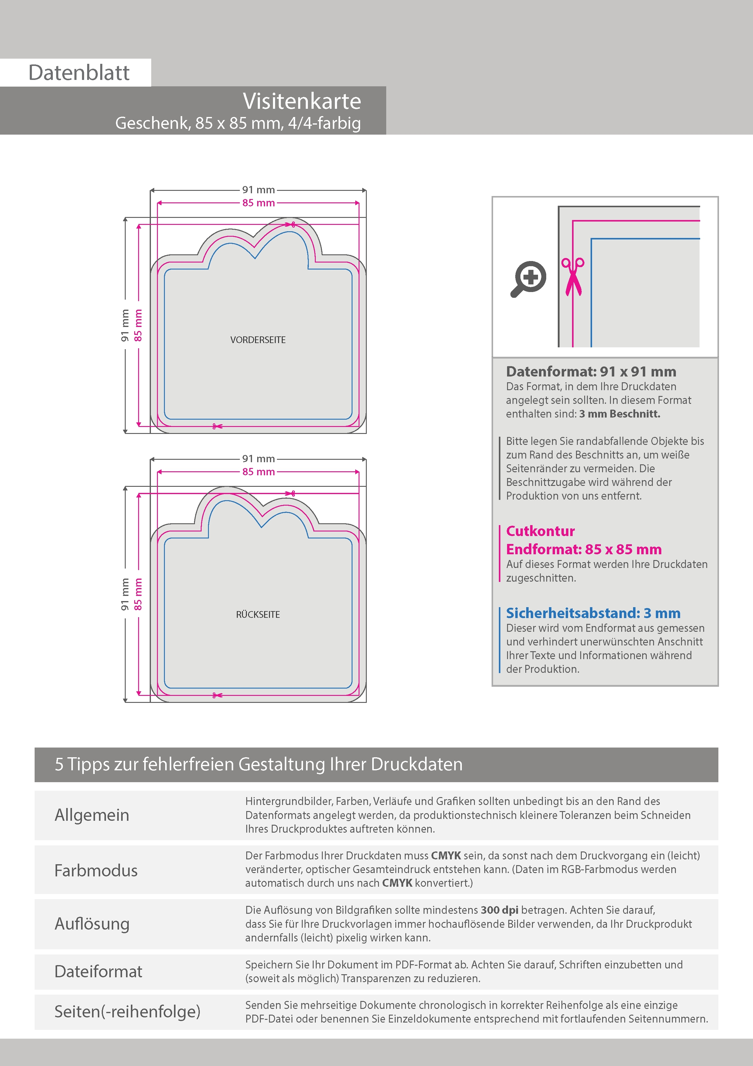 Visitenkarte Geschenk, 85 x 85 mm, 2-seitig, 4/4-farbig CMYK