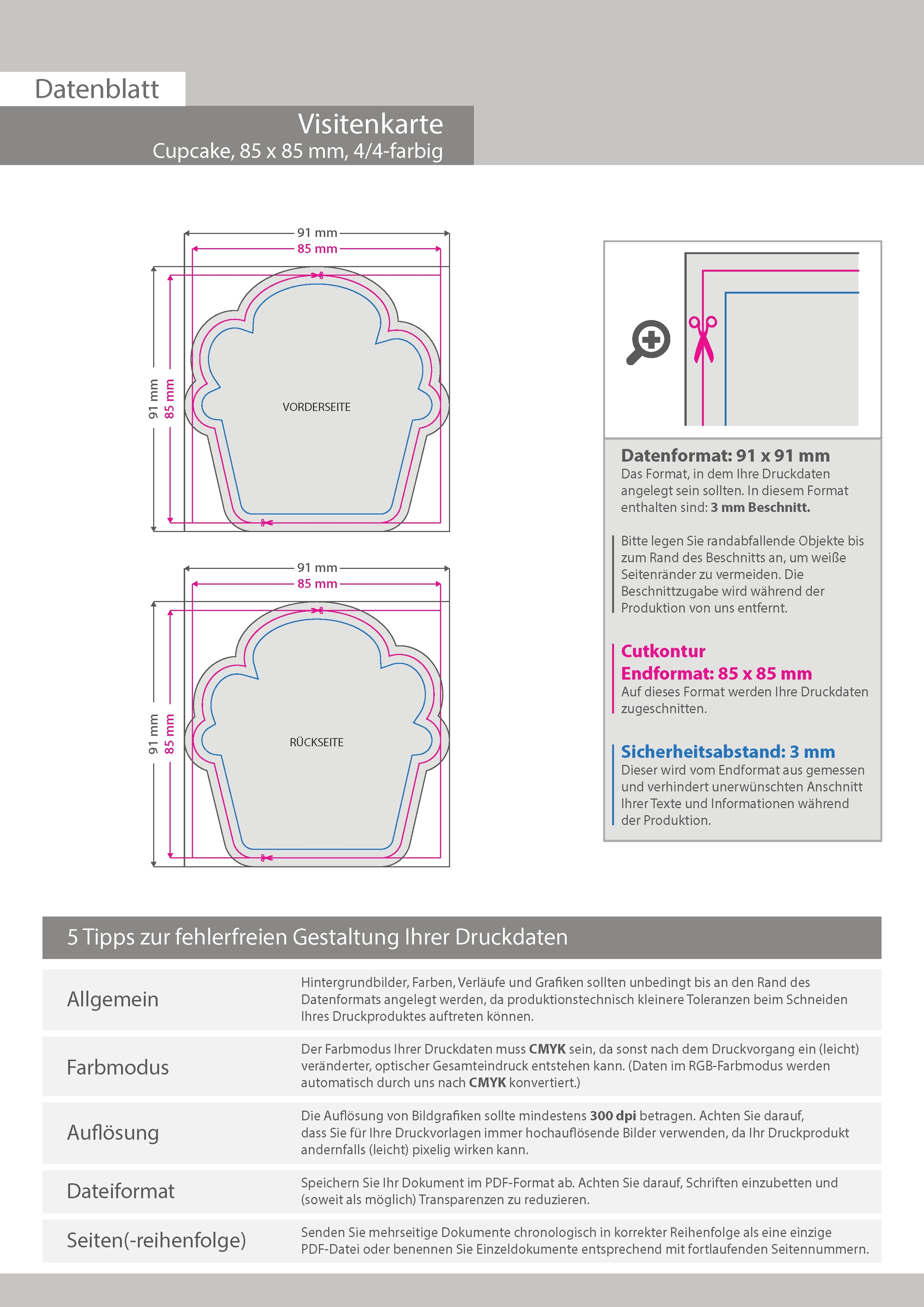 Visitenkarte Cupcake, 85 x 85 mm, 2-seitig, 4/4-farbig CMYK