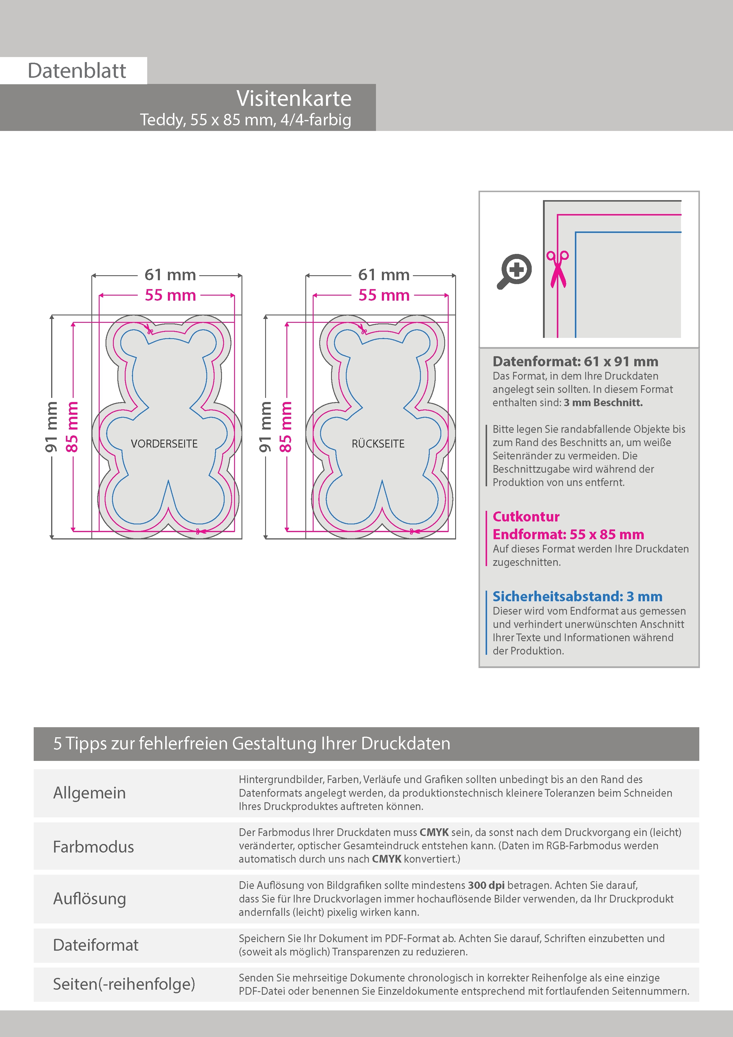 Visitenkarte Teddy, 55 x 85 mm, 2-seitig, 4/4-farbig CMYK