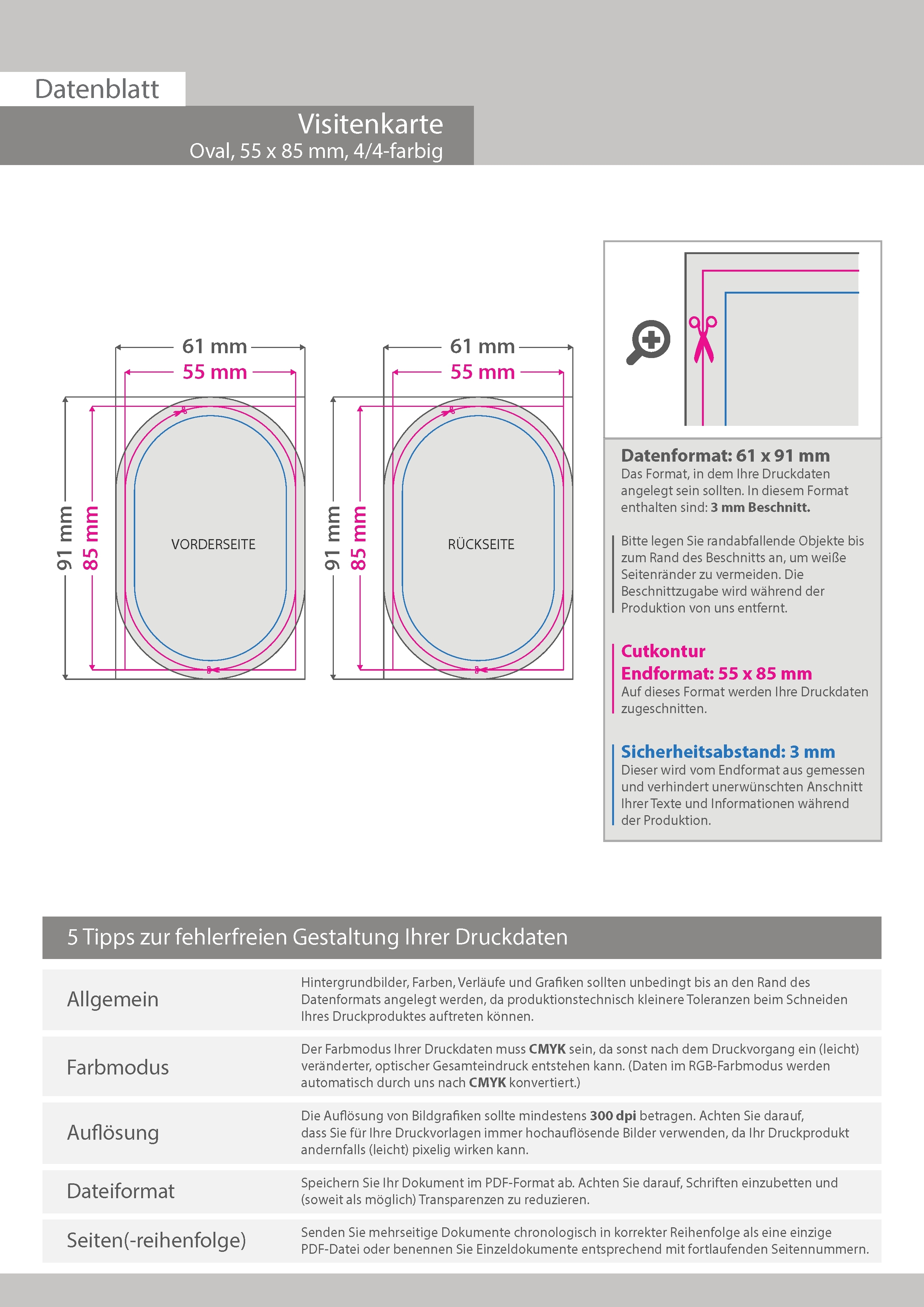 Visitenkarte Oval, 55 x 85 mm, 2-seitig, 4/4-farbig CMYK