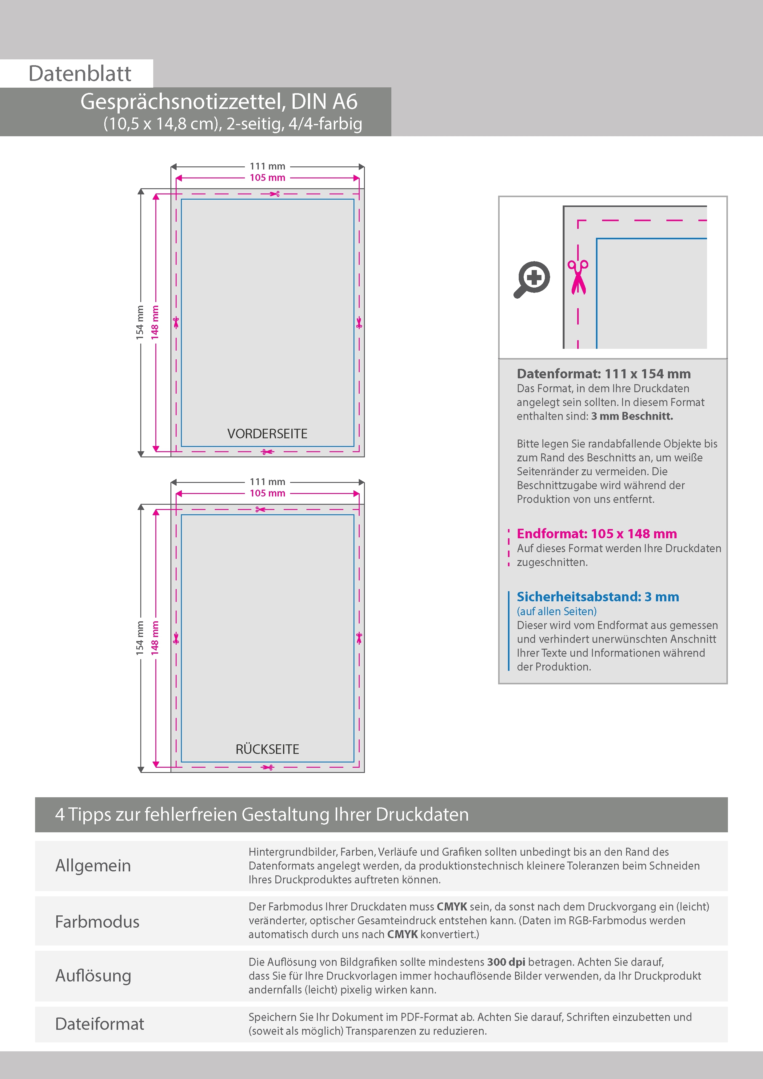 Gesprächsnotizzettel, DIN A6 (10,5 x 14,8 cm), 2-seitig, 4/4-farbig