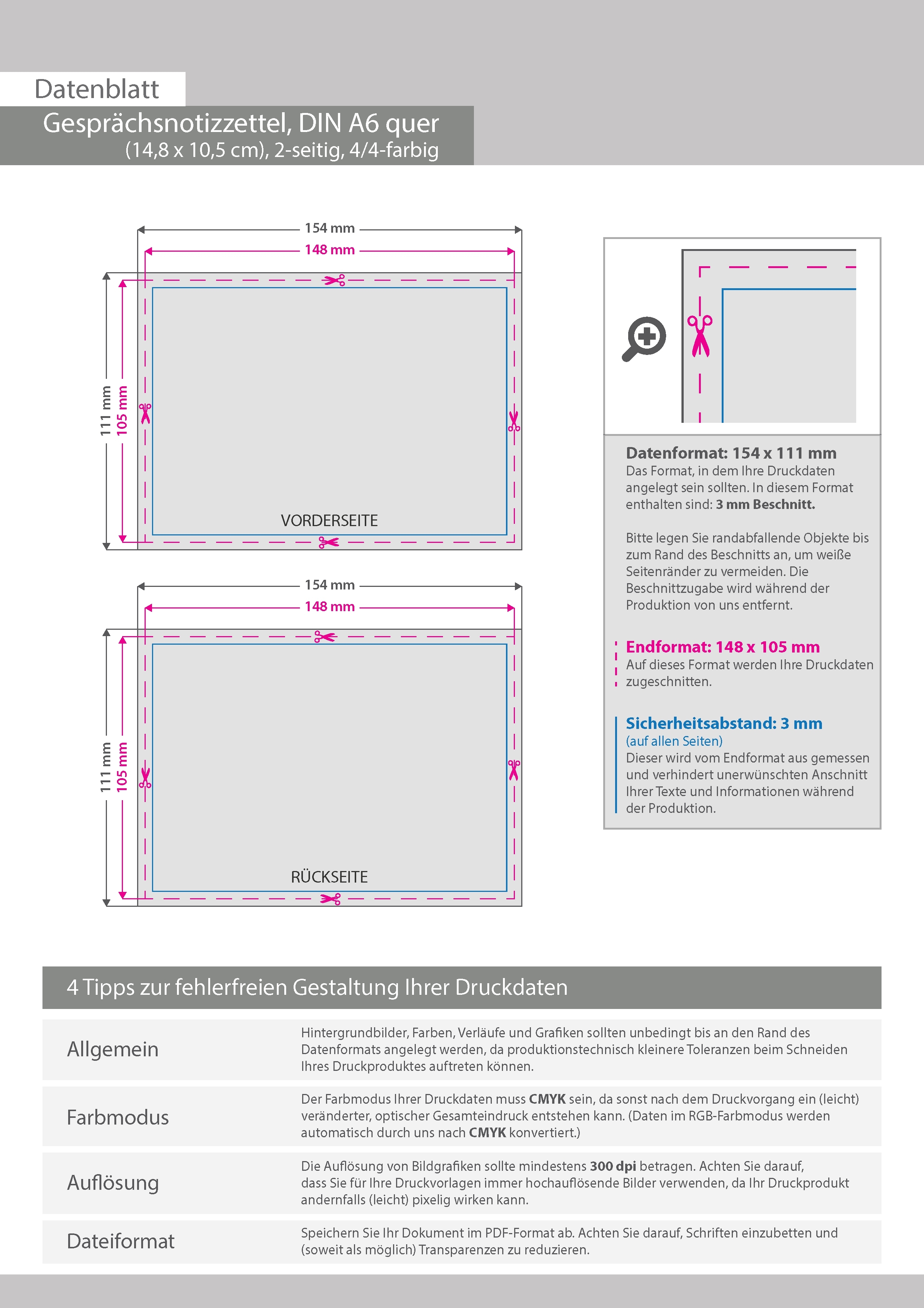 Gesprächsnotizzettel, DIN A6 quer (14,8 x 10,5 cm), 2-seitig, 4/4-farbig