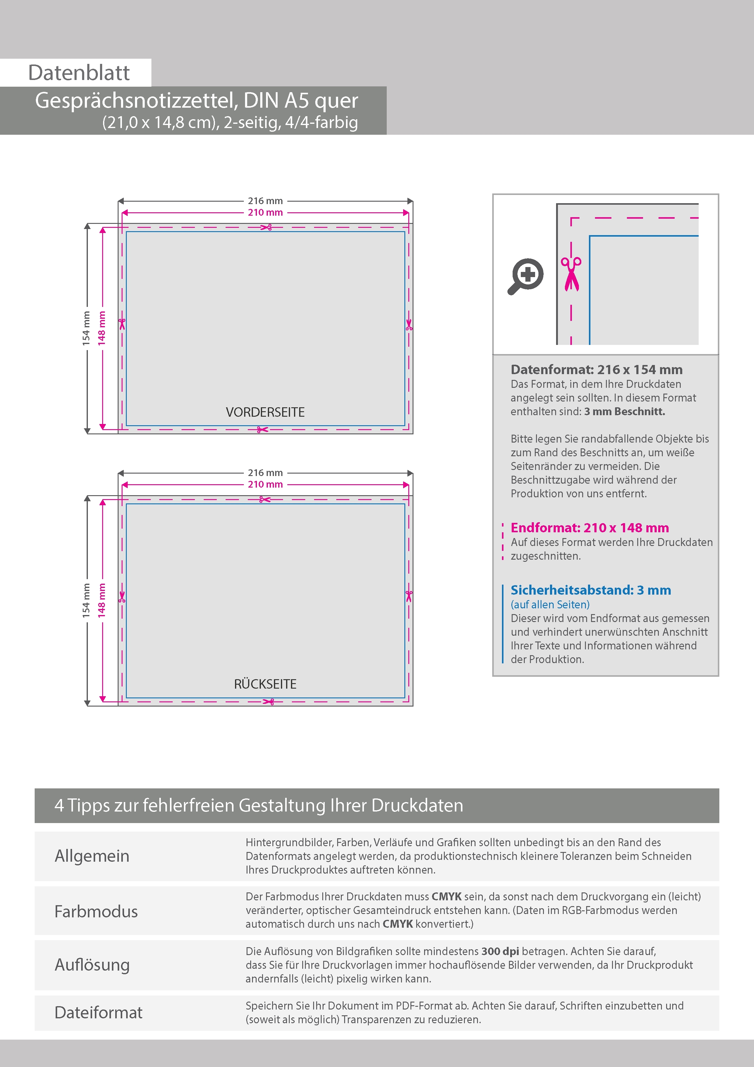 Gesprächsnotizzettel, DIN A5 quer (21,0 x 14,8 cm), 2-seitig, 4/4-farbig
