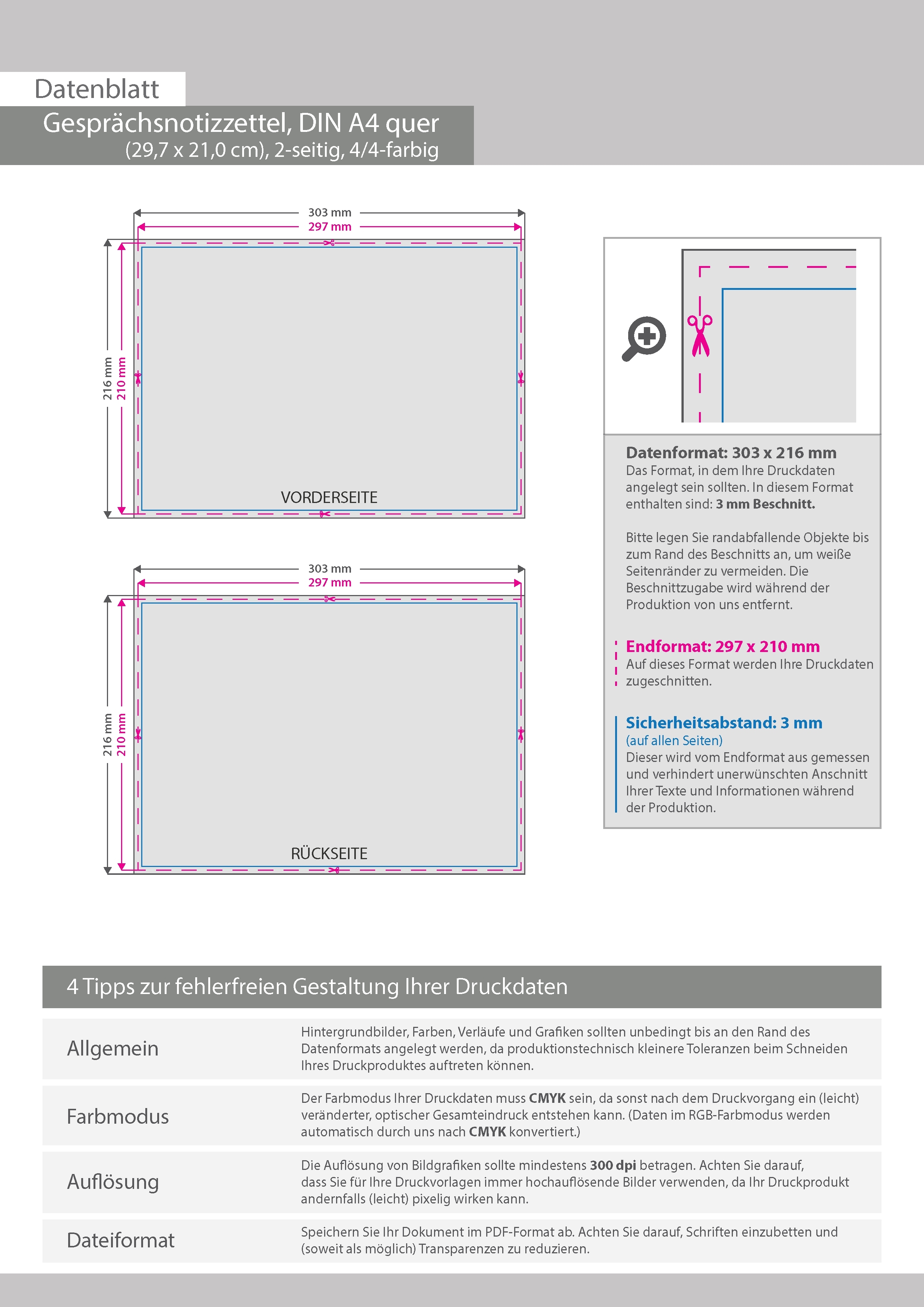 Gesprächsnotizzettel, DIN A4 quer (29,7 x 21,0 cm), 2-seitig, 4/4-farbig
