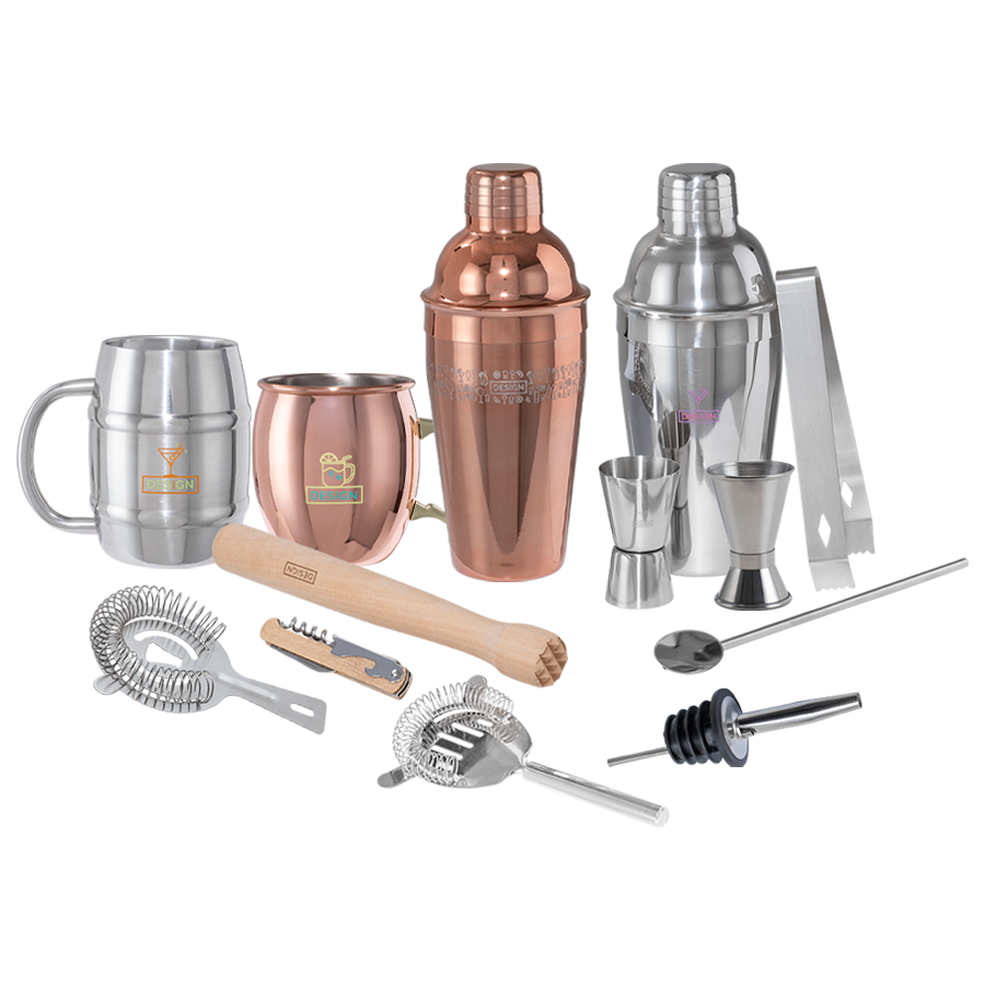 z. B. viele verschiedene Tassen, Gläser, Lunchboxen und Flaschenöffner
